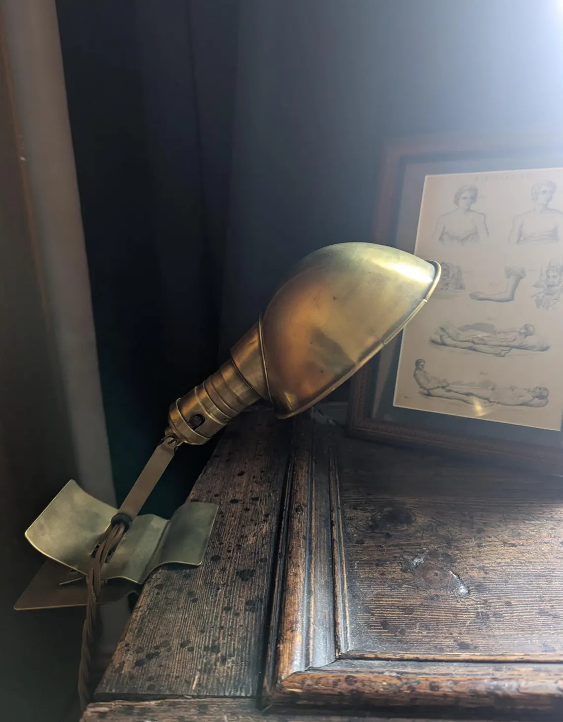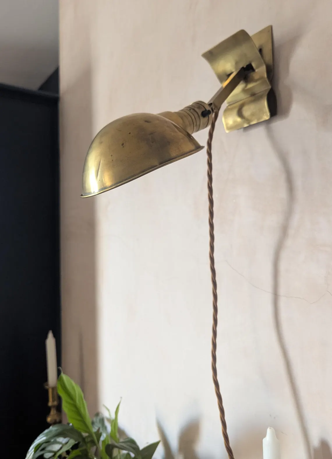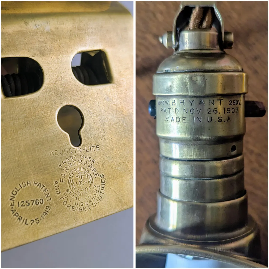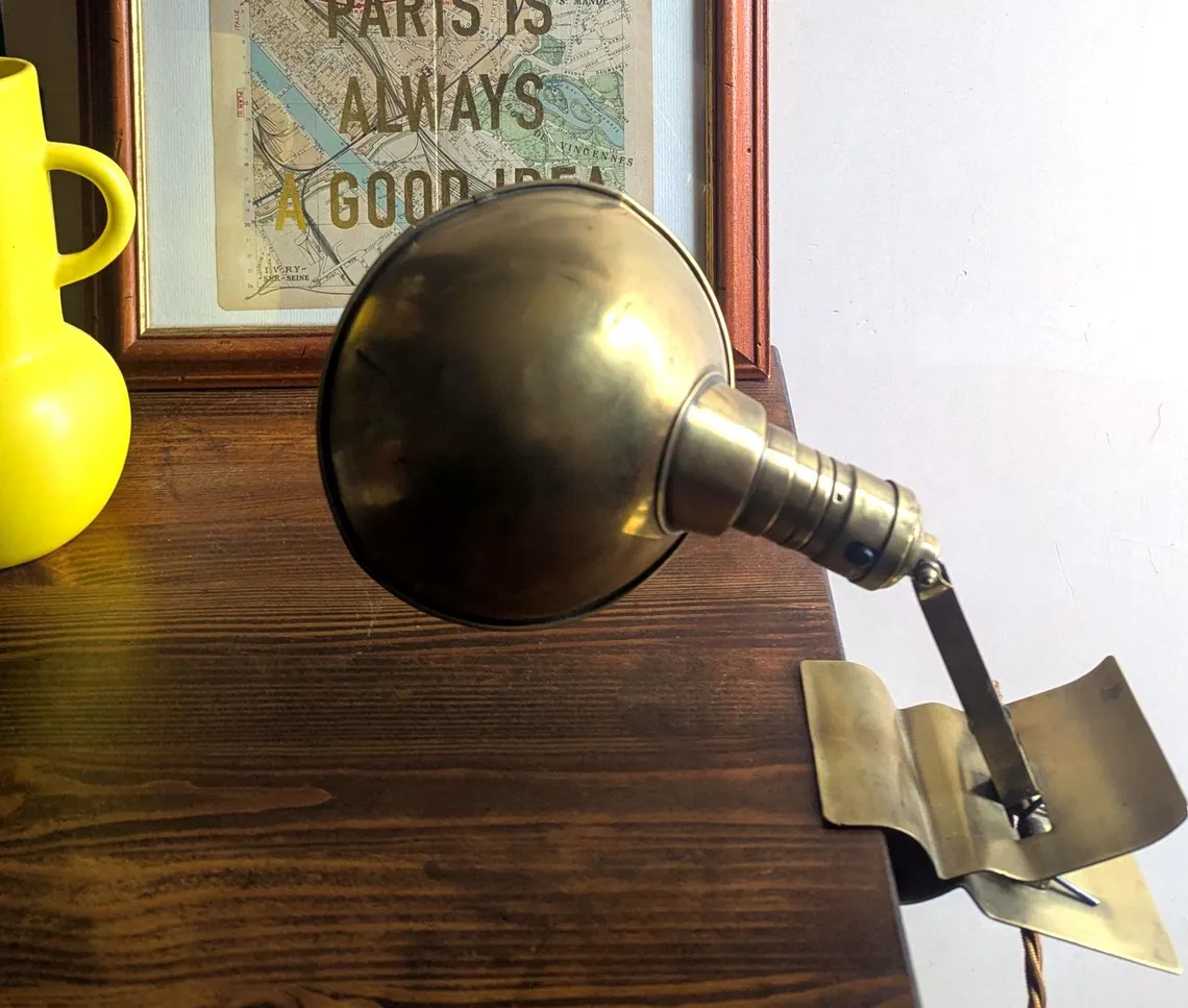 A superb 1920s ‘Adjusto-Lite’ clamp lamp in brass, made in Brooklyn, New York by Farberware.