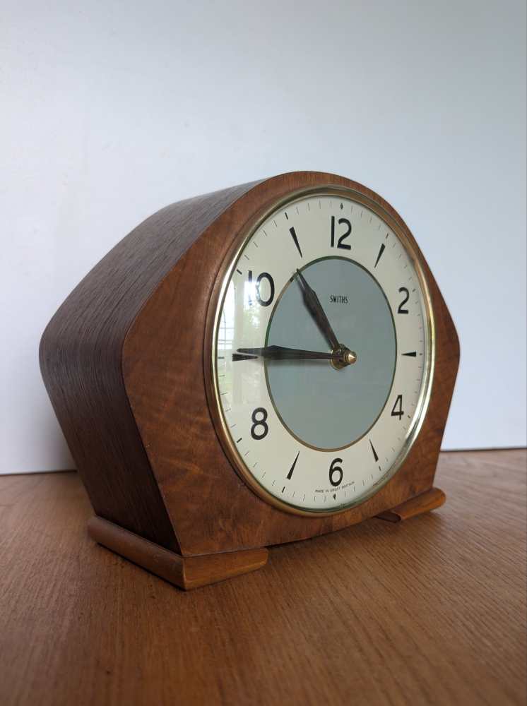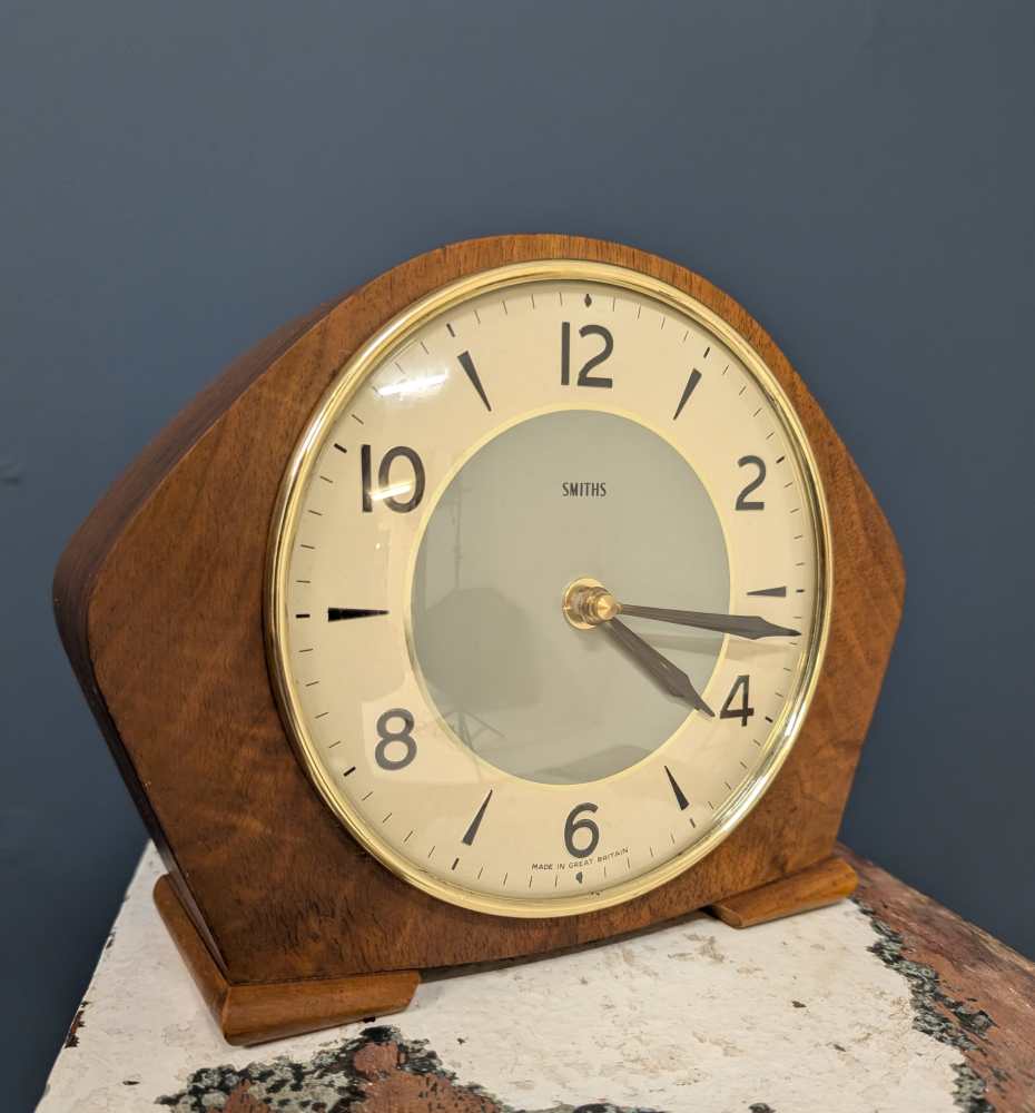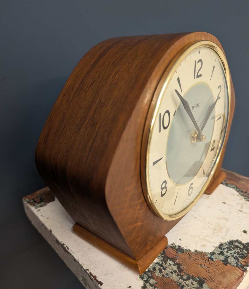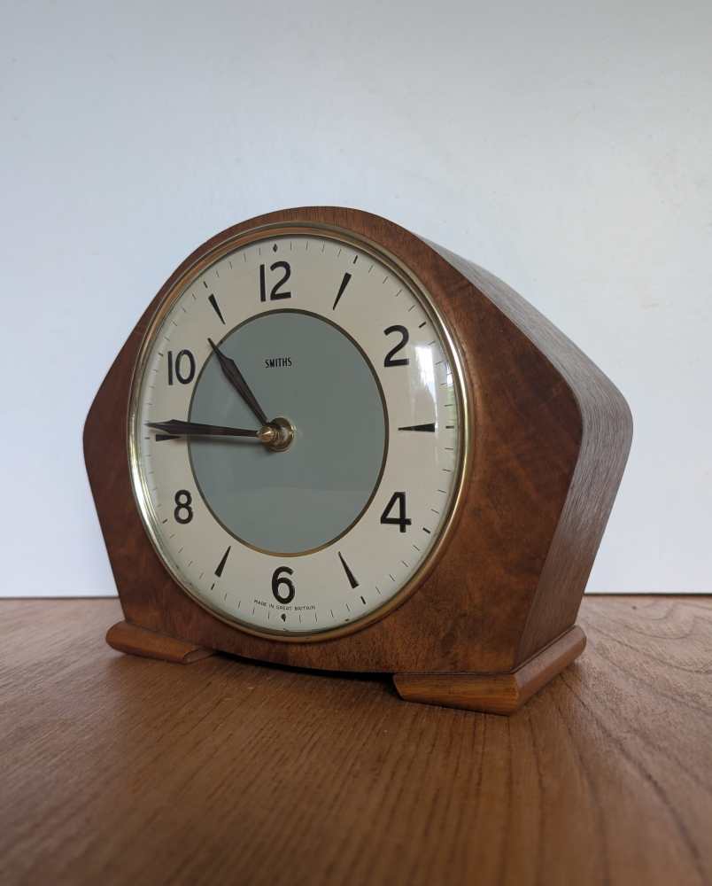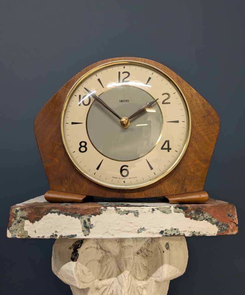A fantastic looking British made Smith’s walnut cased mantel clock dating from the late 1950s.