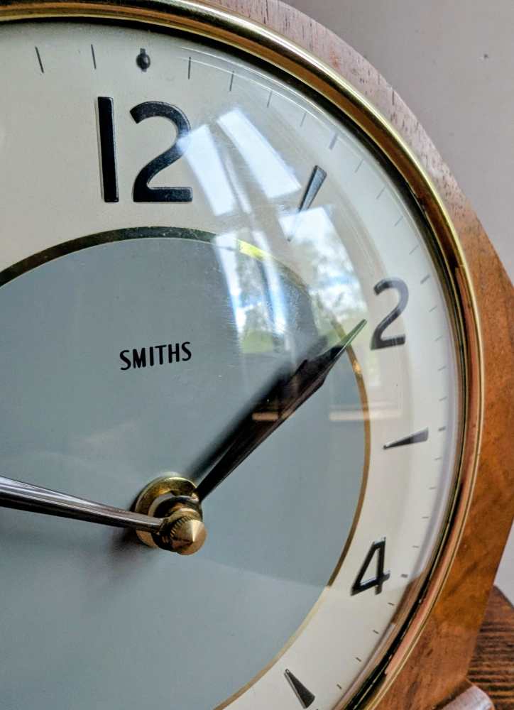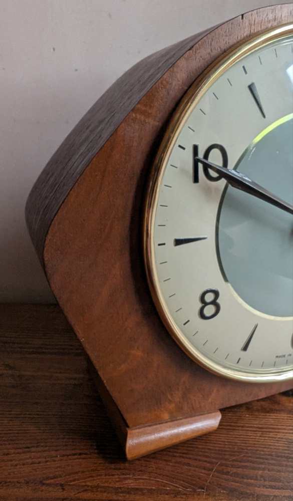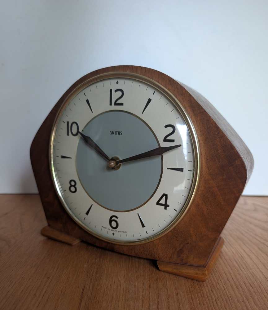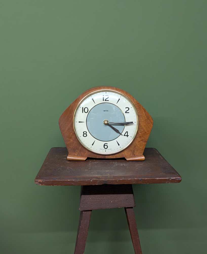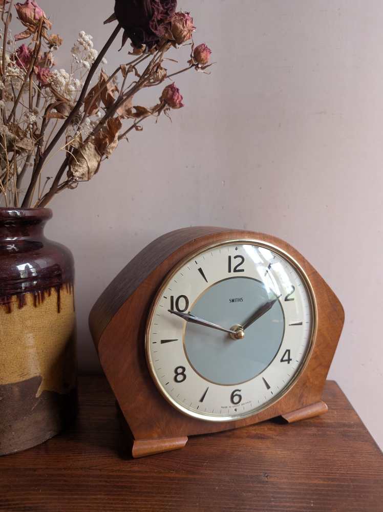 A fantastic looking British made Smith’s walnut cased mantel clock dating from the late 1950s.