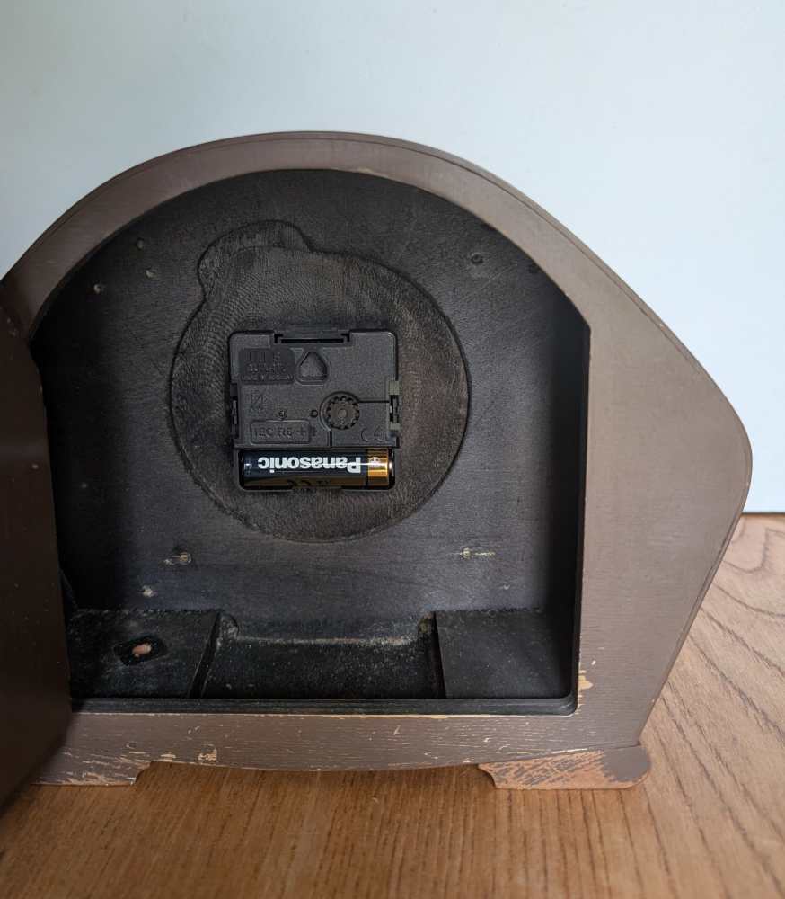 This clock has been fully professionally serviced and while the original movement could not be salvaged, a quartz movement has been installed and connected to the original hands. So in the best of both worlds it looks exactly as it would have done when it was made (the brass hands and outer ring have been polished to a gleaming gold), but it doesn’t need winding every few days as it runs off an AA battery which will last perhaps for years.