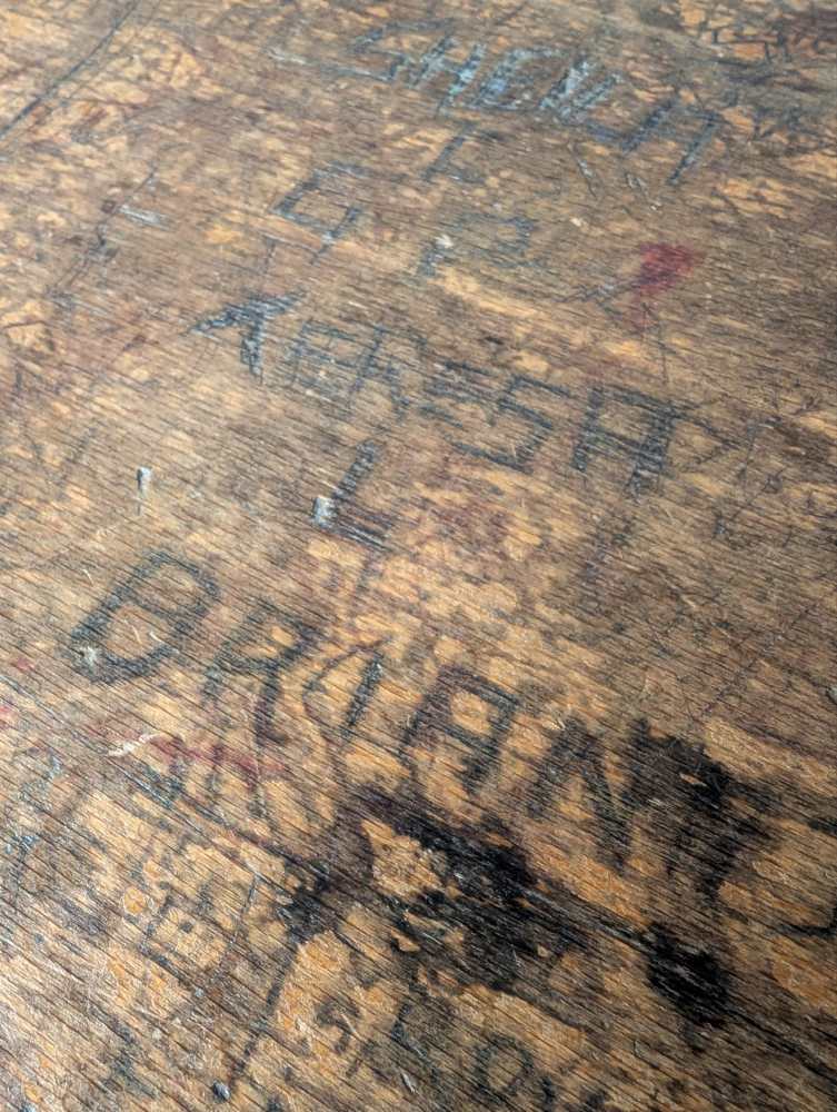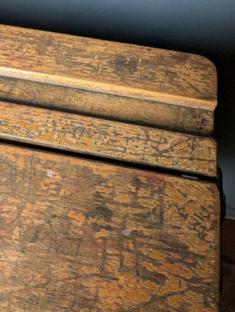 Still entirely sturdy half a century or so on, this has been waxed to even the writing surface and add a layer of protection all over.