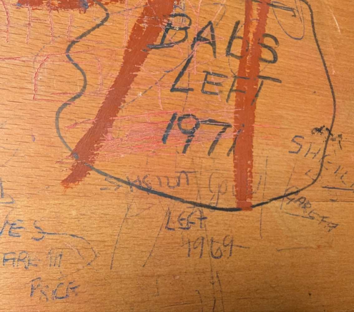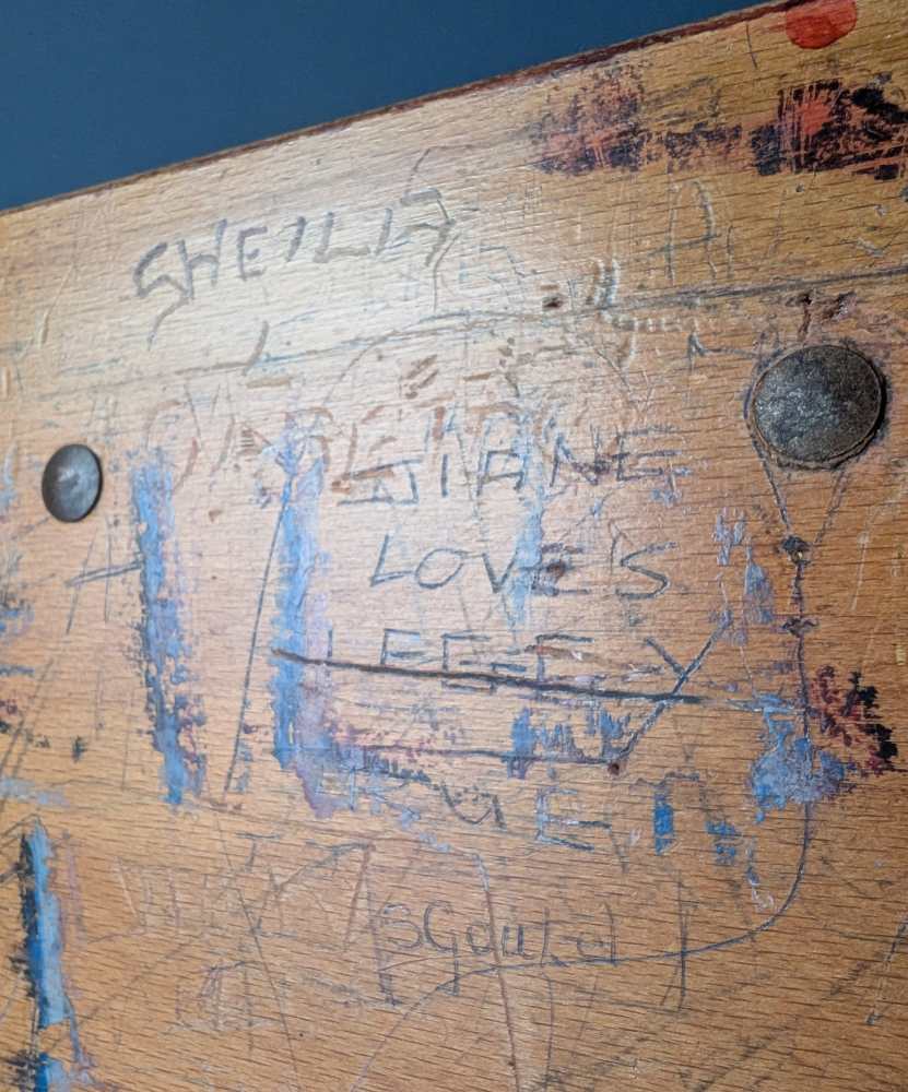 It holds all of Form 4’s hottest gossip. Will Sheila’s undying love for Gareth be requited? Whether expressed in exultant red crayon, or frustrated hard biro, it’s there for all to see. Were Teresa’s feelings for Brian ever shared beyond the underside of a Glamorgan County Council school desk lid? What caused Babs to leave in 1971, hot on the heels of Sheila in 1969? Presumably the onslaught of Form 5, but what else was going on?