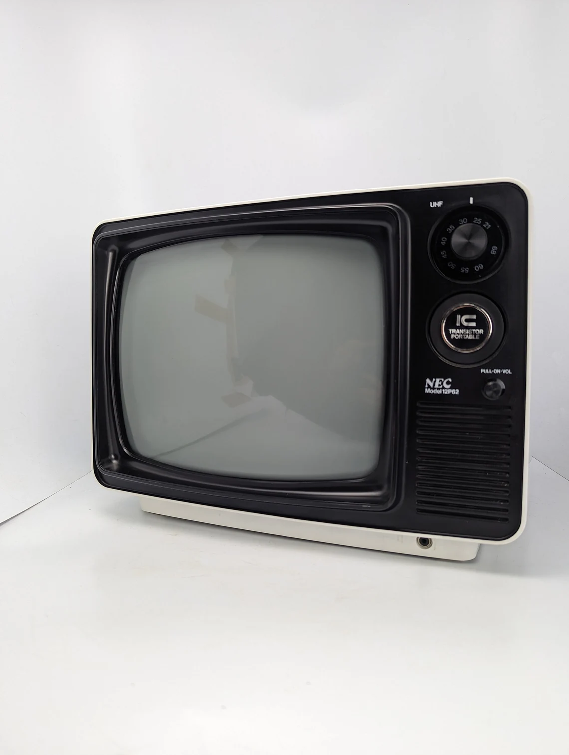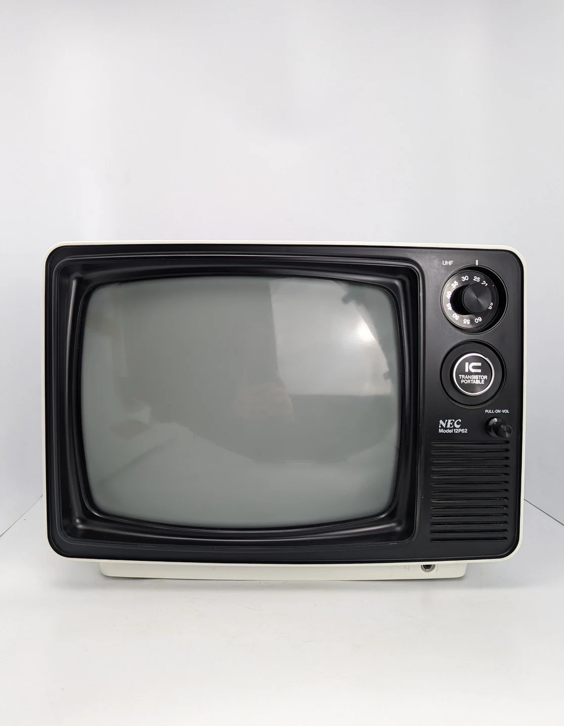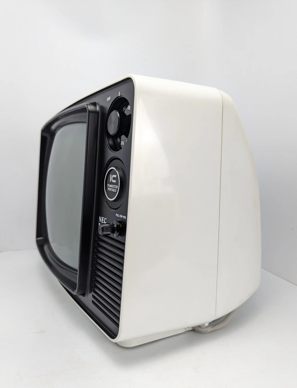 A great looking vintage Japanese NEC model 12P62 white and black 1980s television.
