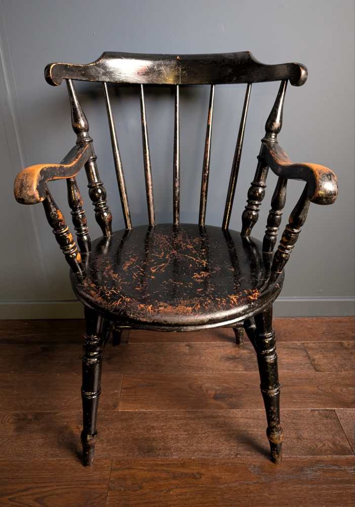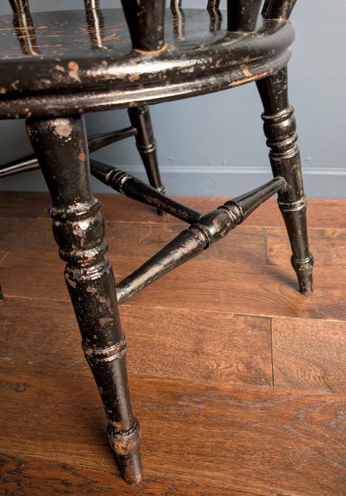 A wonderful, substantial painted later-19th century Windsor chair with a penny seat, and turned details.