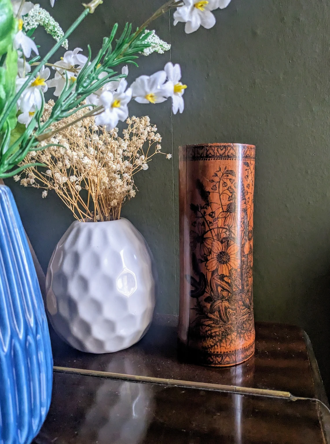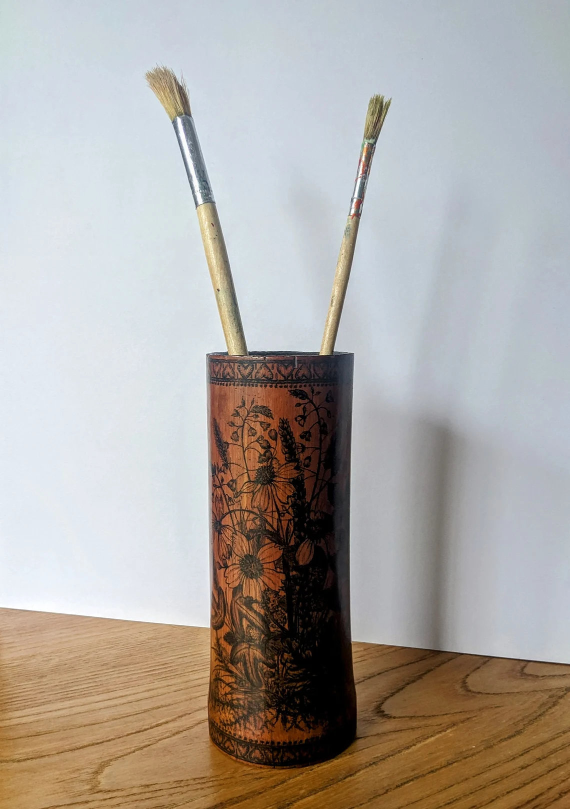 This pot looks great as it is and could be used as pot for brushes or pens, or for dried stems.