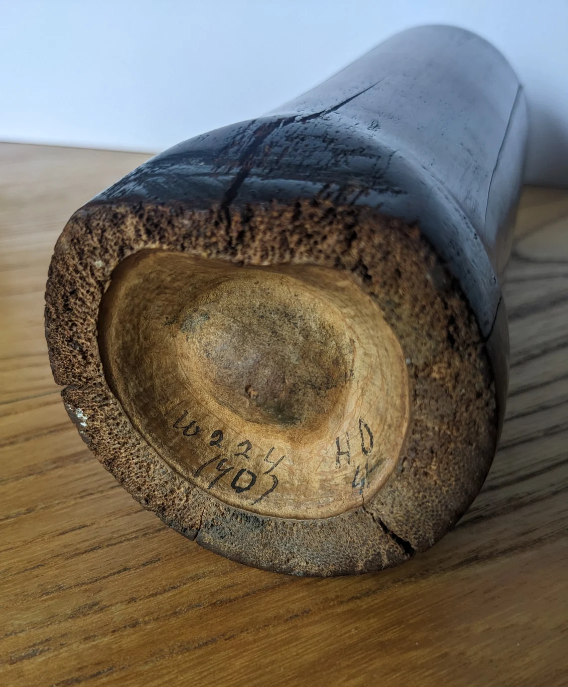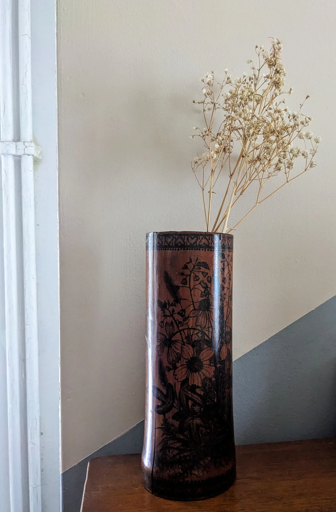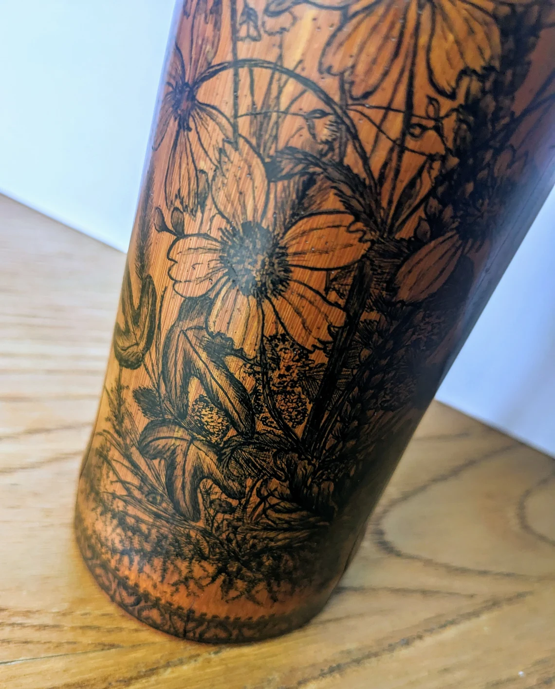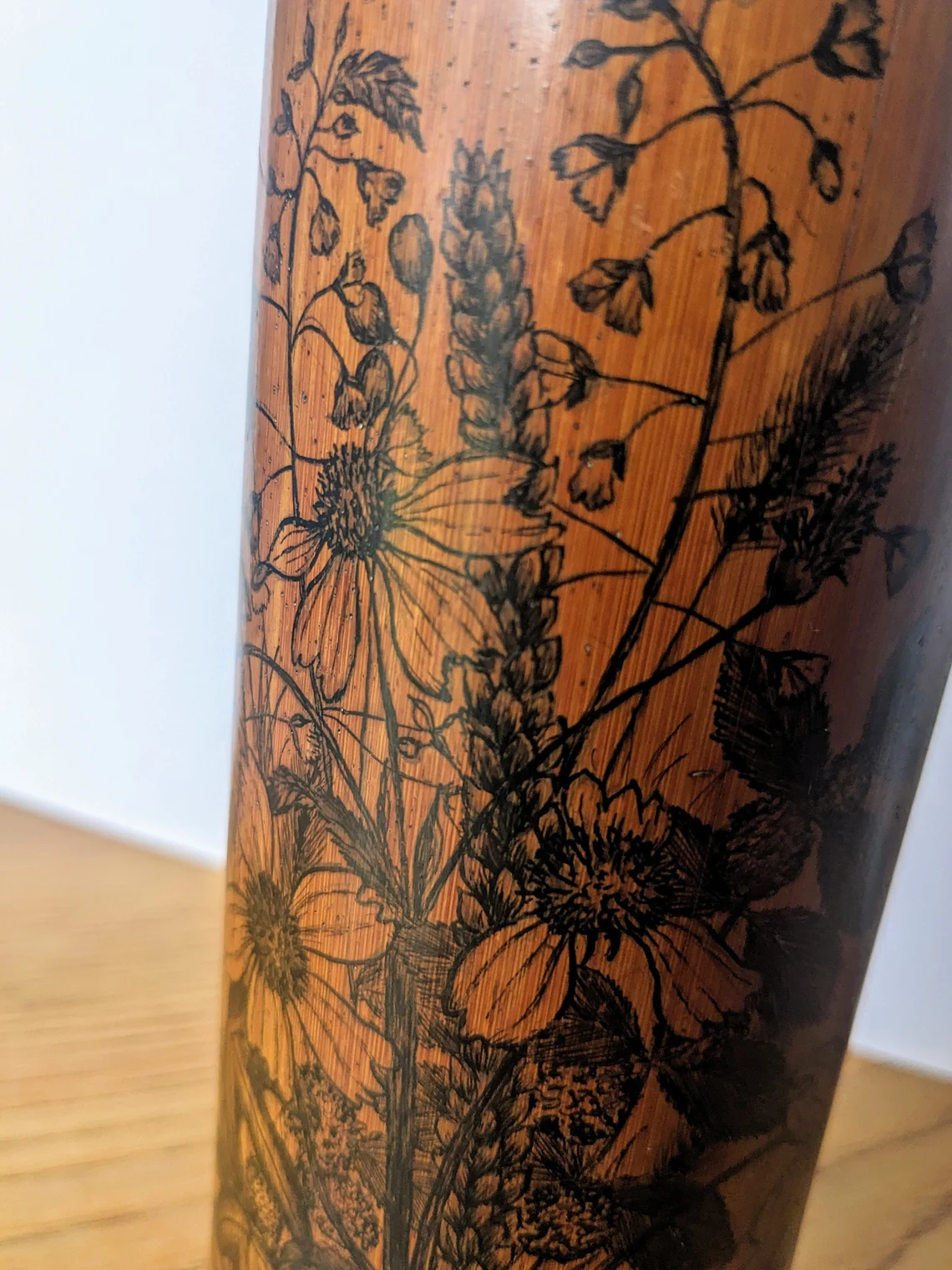A 19th century bamboo Chinese paint brush pot, beautifully decorated with a lovely hand-painted floral design around the outside, with a circle of hearts to the brim.