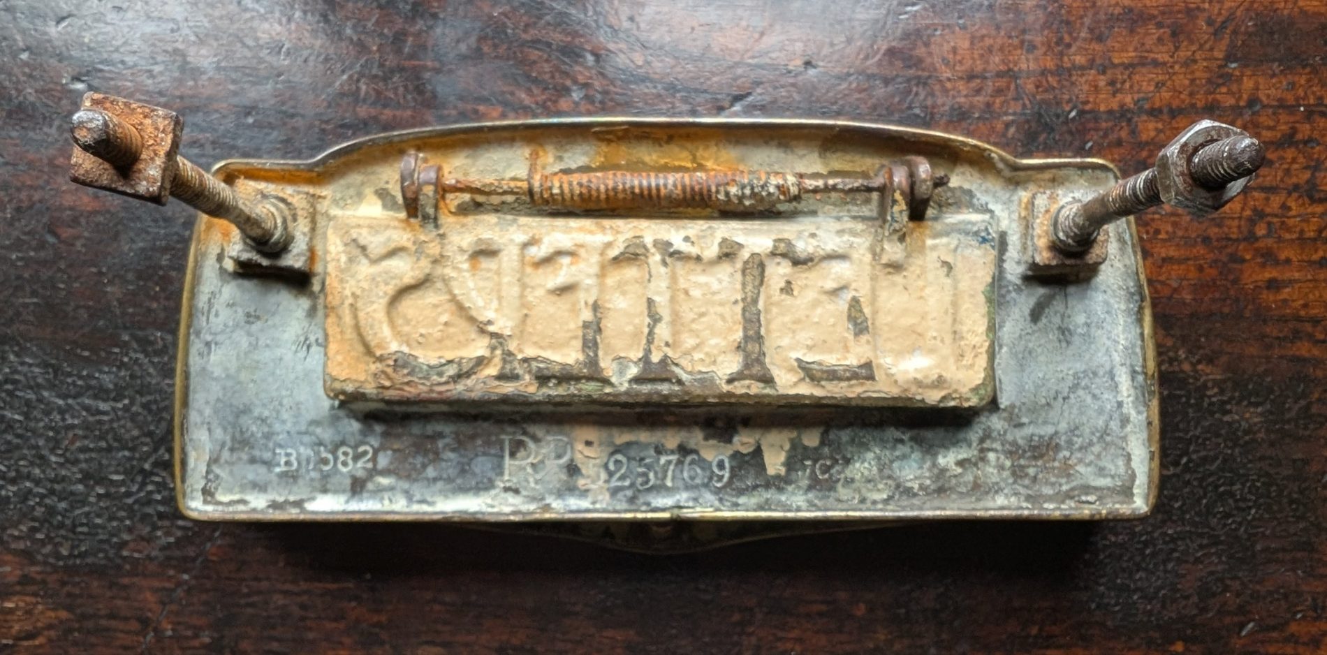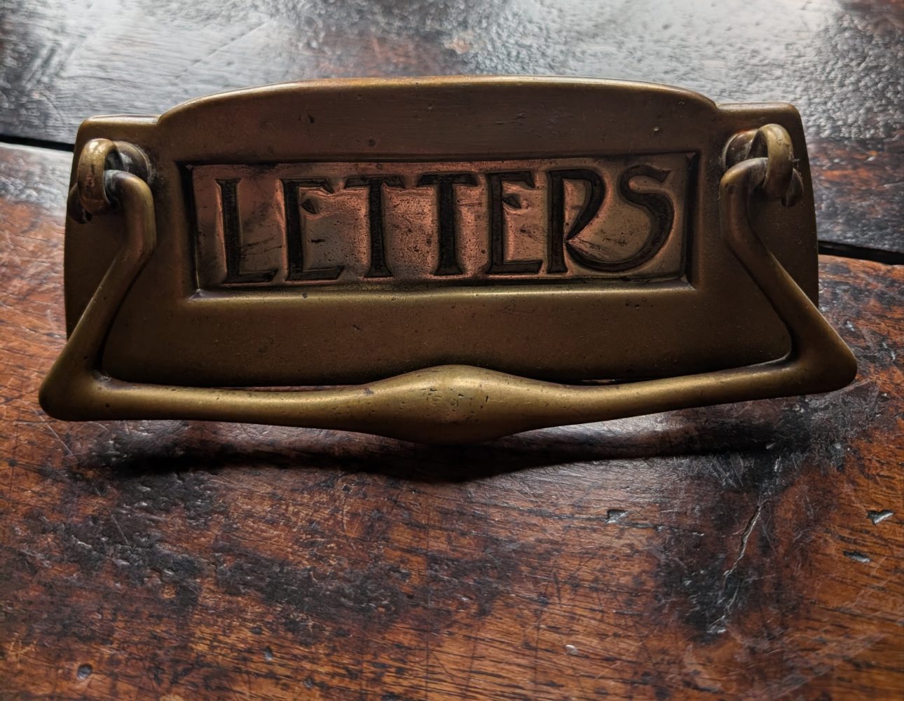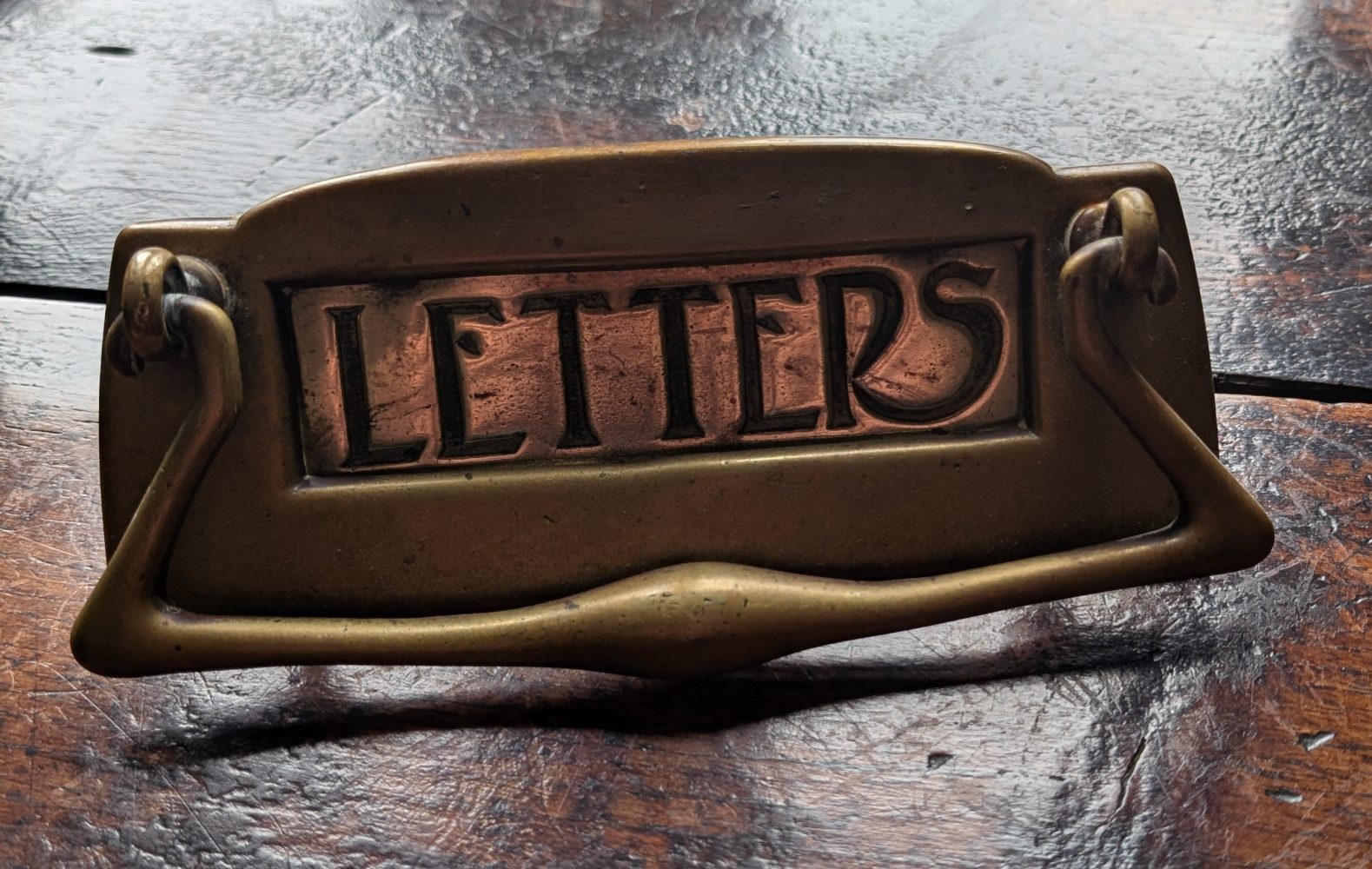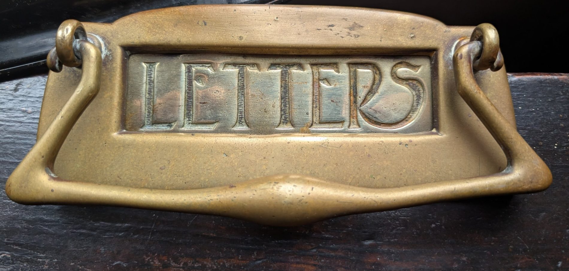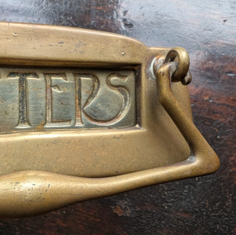 A sublime looking Art Nouveau brass letterbox for the front door.