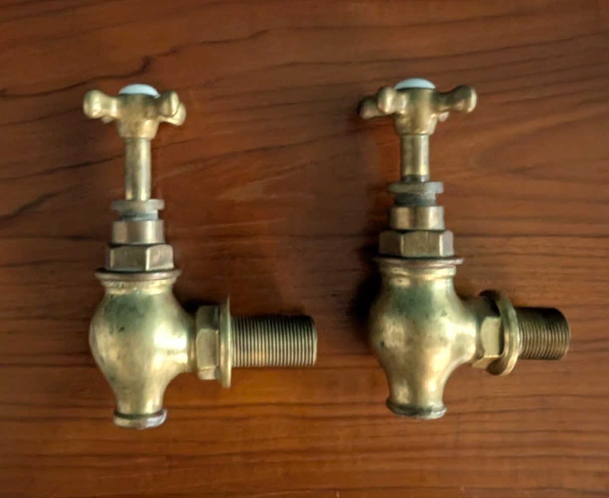 Antique brass globe taps – hot and cold