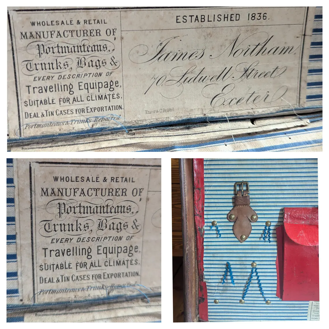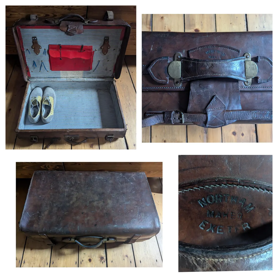 An gorgeous Victorian dark brown very solid, large leather suitcase of high quality, made by James Northam of 70 Sidwell Street Exeter, ‘Manufacturers of portmanteaus, trunks, bags and every description of travelling equipage suitable for all climates…’. The company was established in 1836.