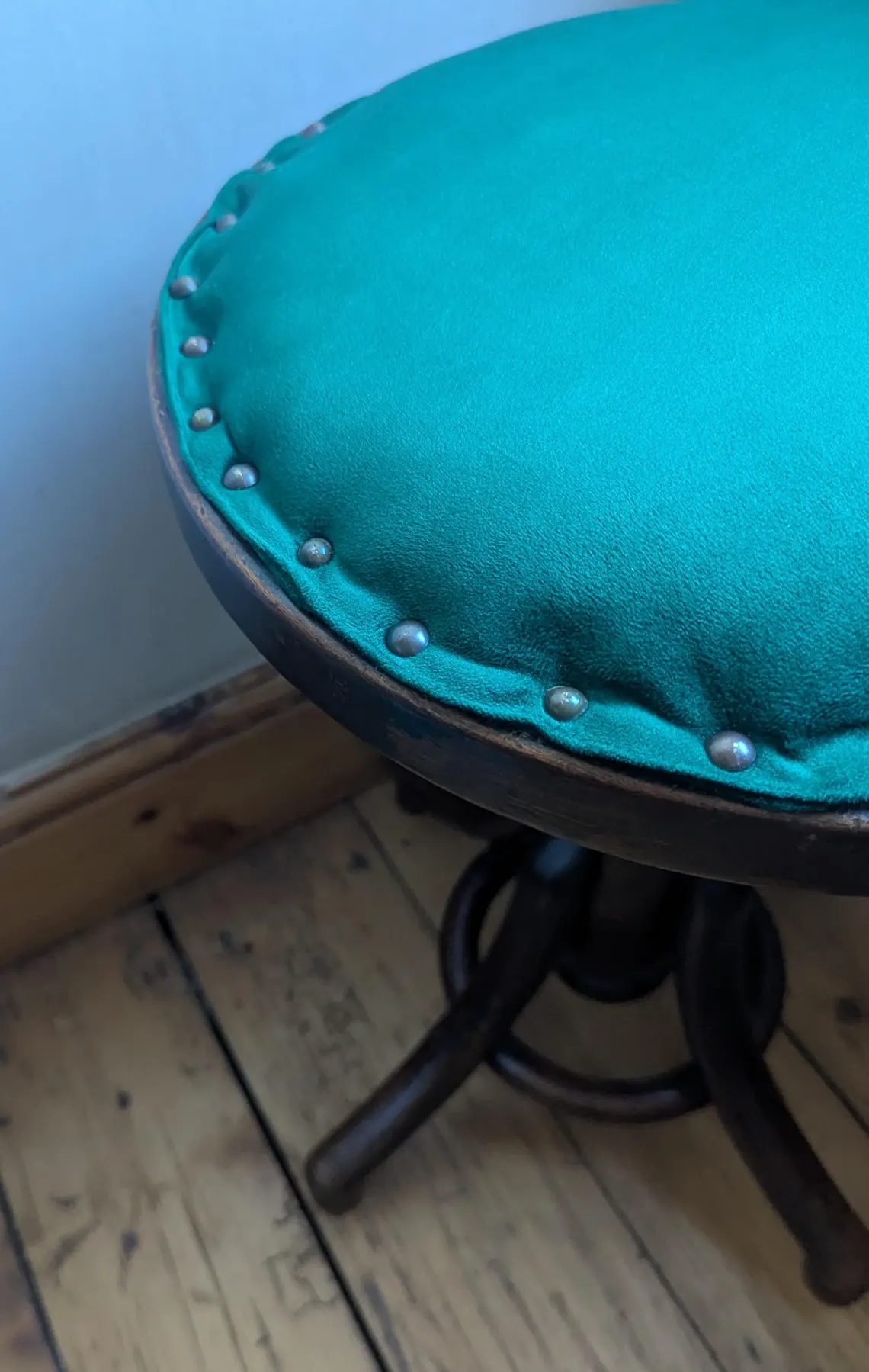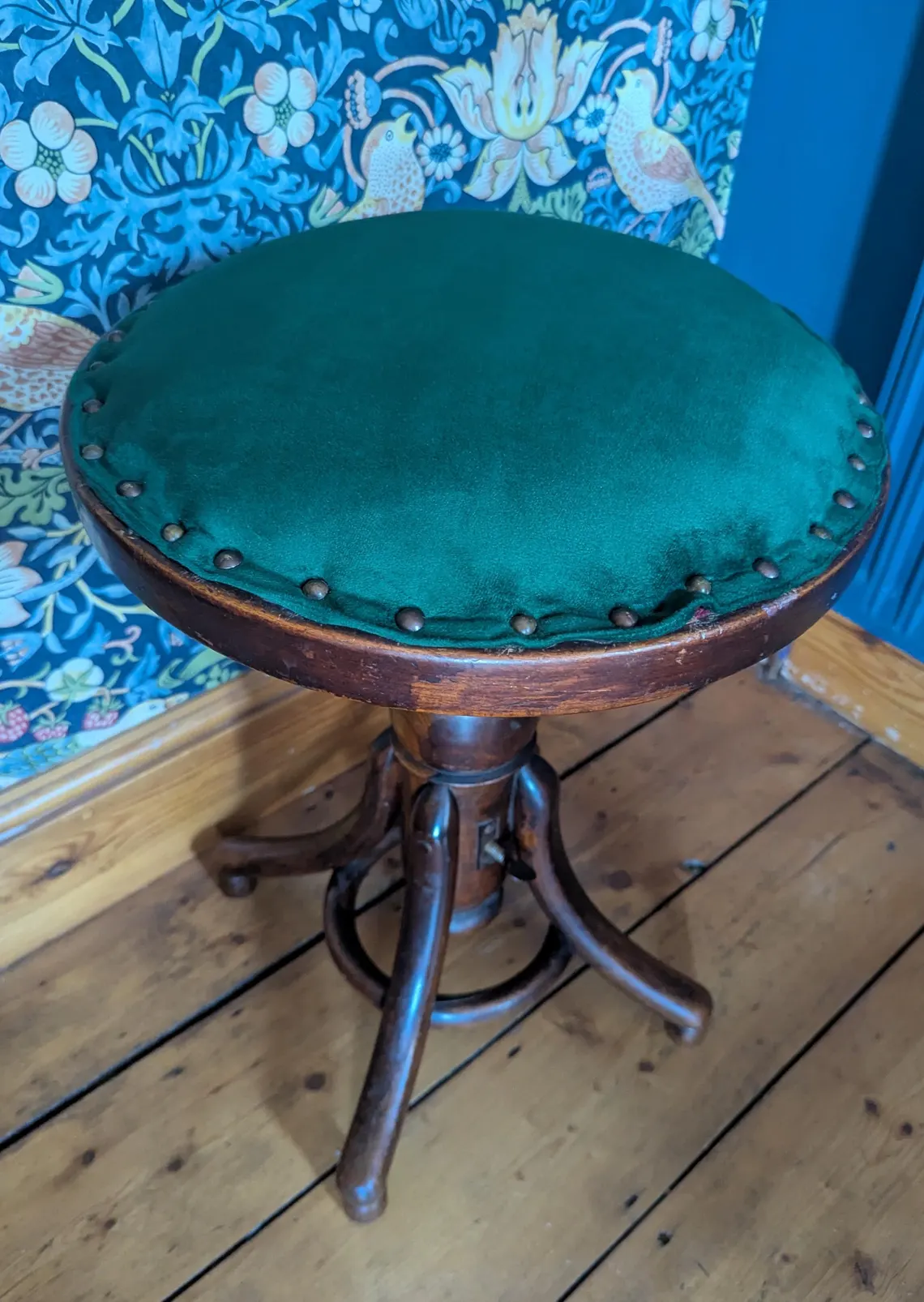 Antique oak velvet seated adjustable stool