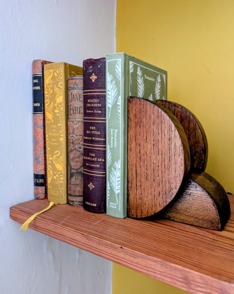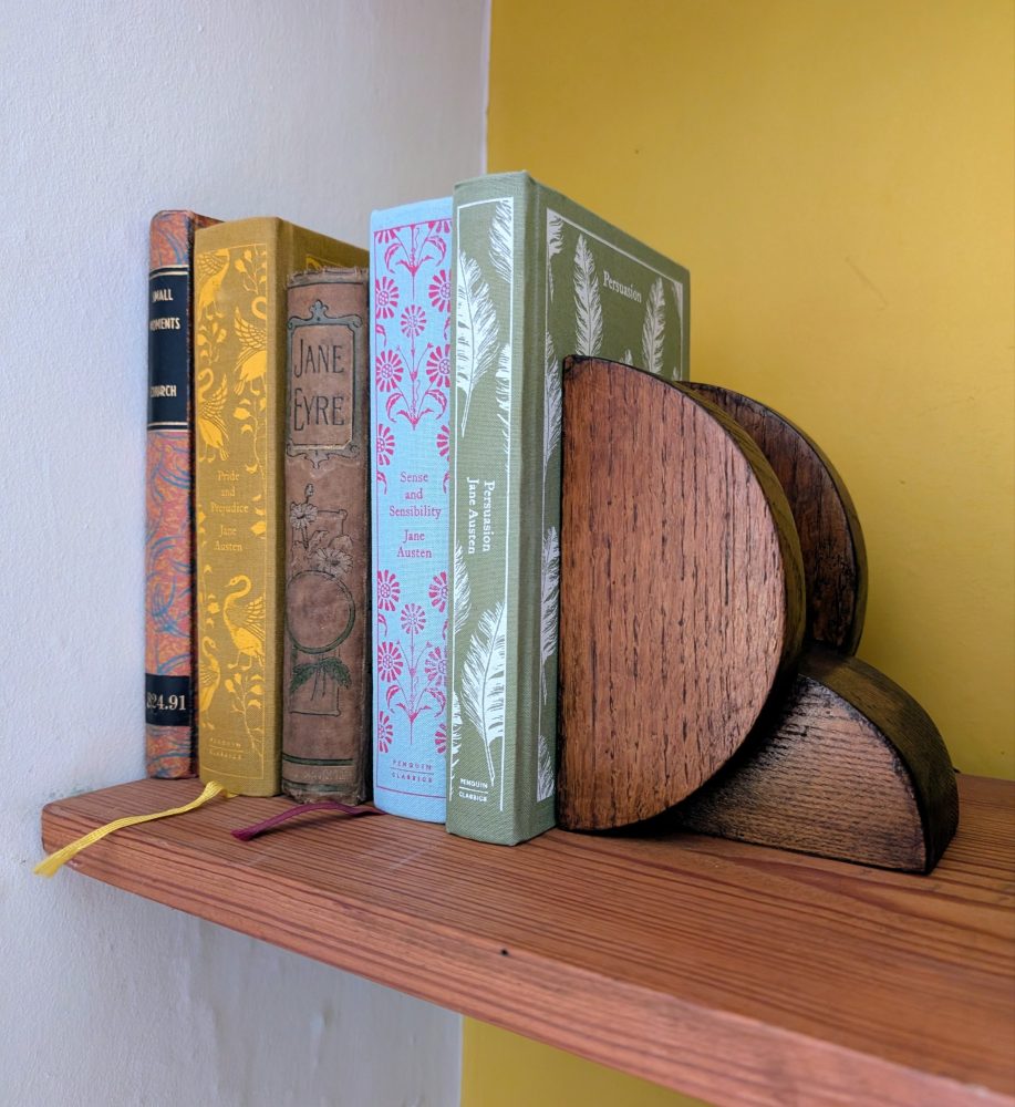 They have a fantastic shape in the unmistakably Deco style, and are a great way of keeping a number of books on your desk, shelf or side table, when there is a wall or another heavy item to one side.