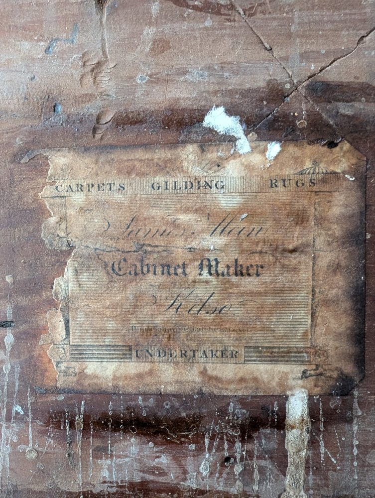 Crafted around 200 years ago by James Mein whose label is still present to the rear of the mirror, offered goods and services from carpets and rugs, to gilding and even undertaking.