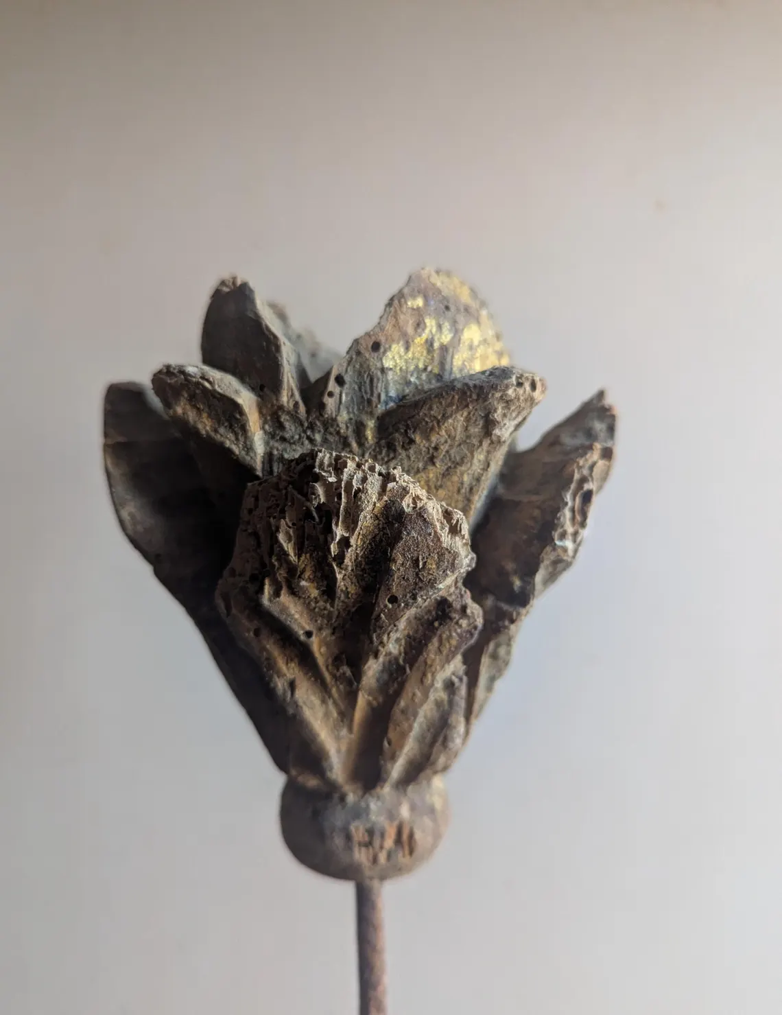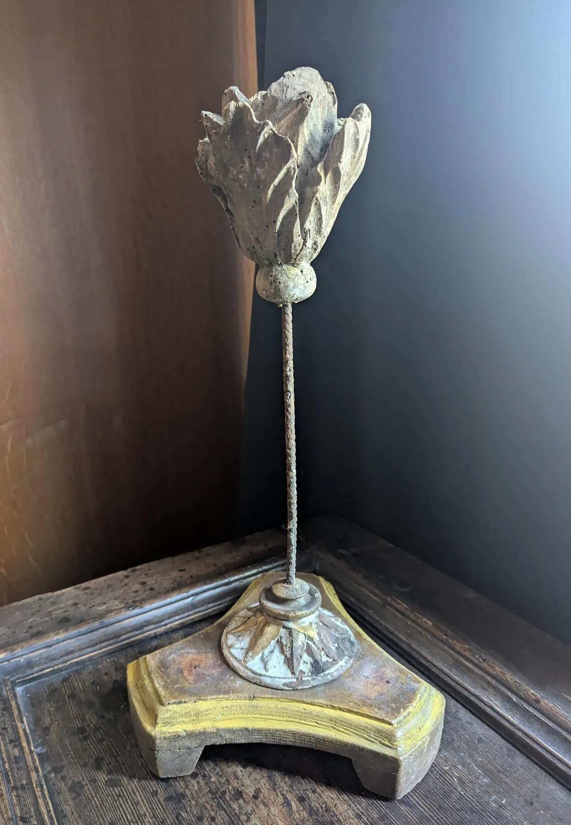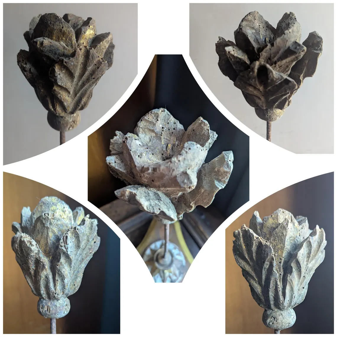 A beautiful antique, believed Italian, wooden carved flower believed originating from a very large, old, circa 17th century picture frame.
