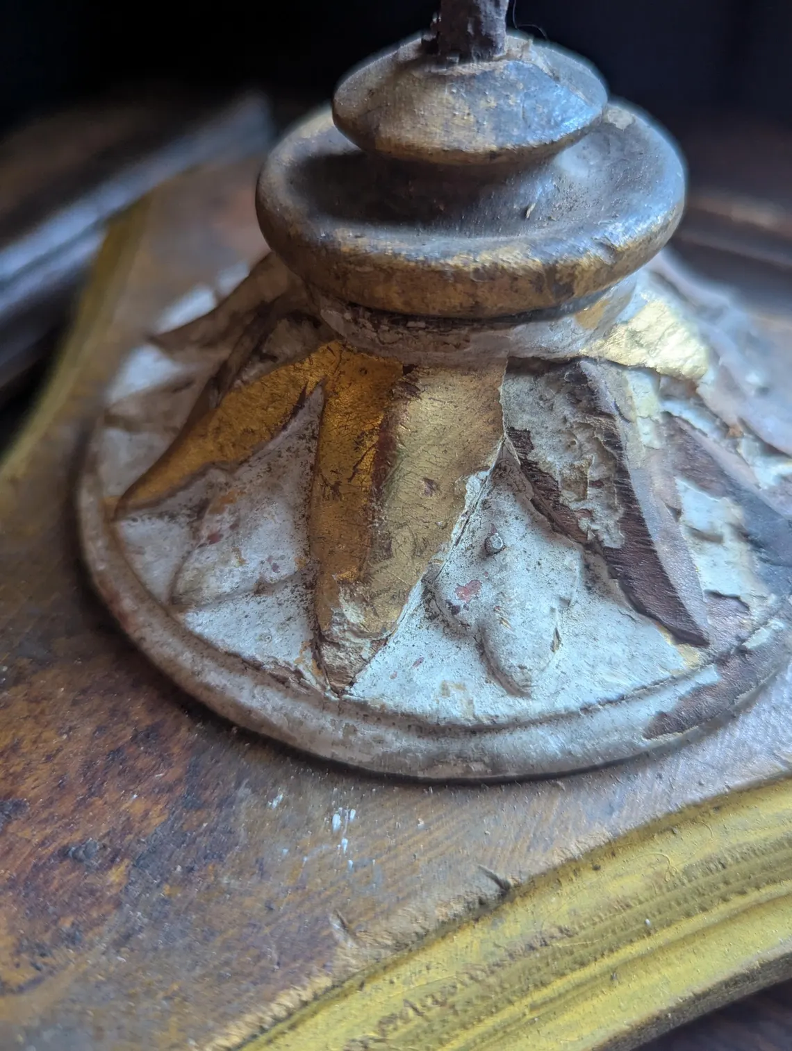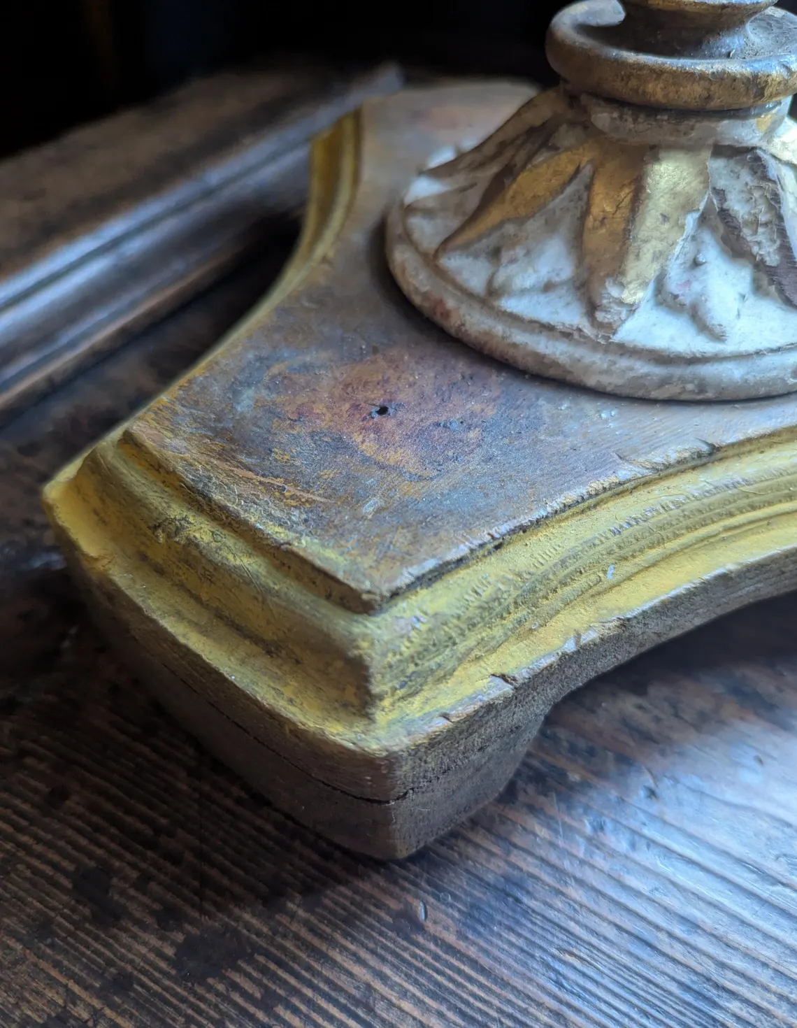 Beautifully carved with shaped petals, a little of the original gilding on the flower is still present but it has mostly worn away. There is evidence of historic woodworm too.