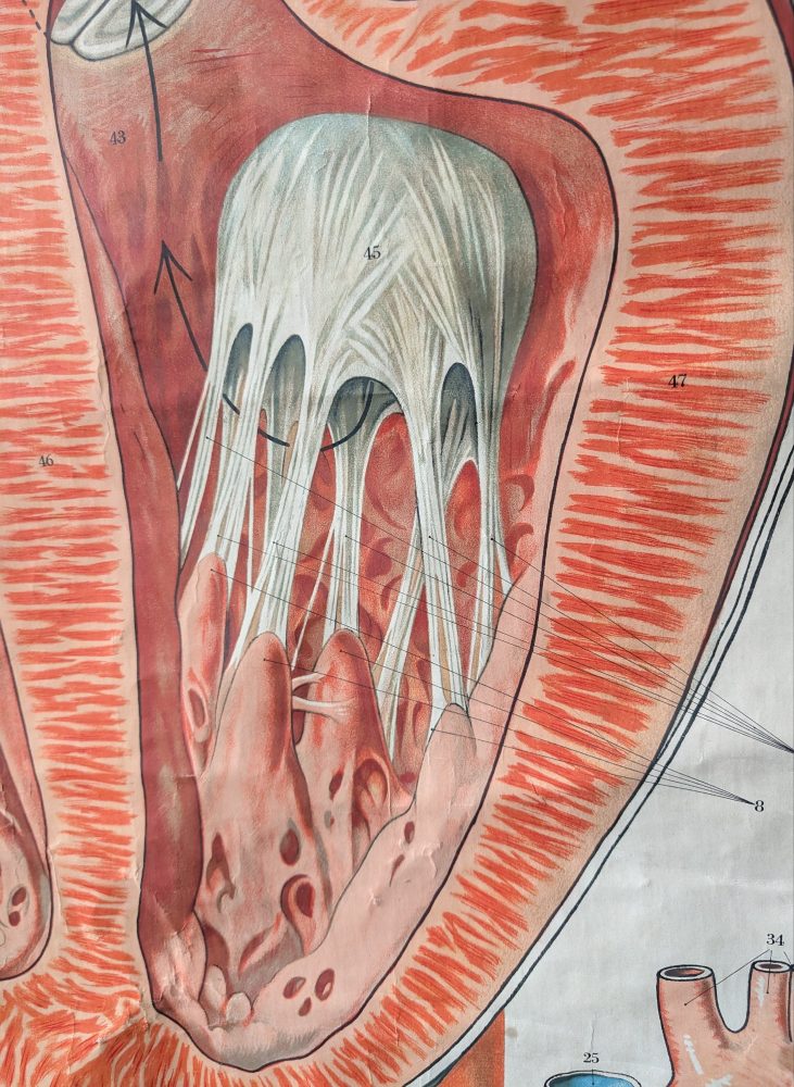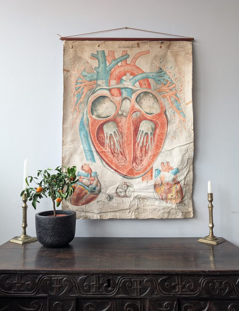 A large c.1920s large Medical diagram of a heart, produced by Adam Rouilly.