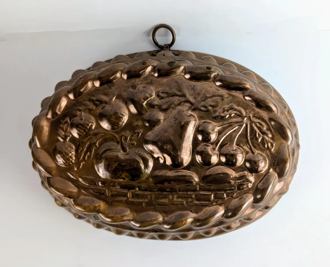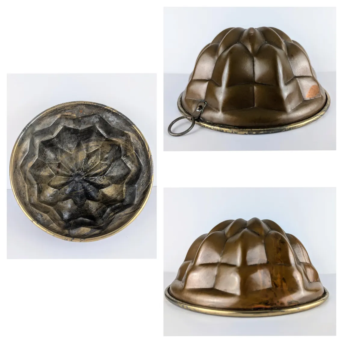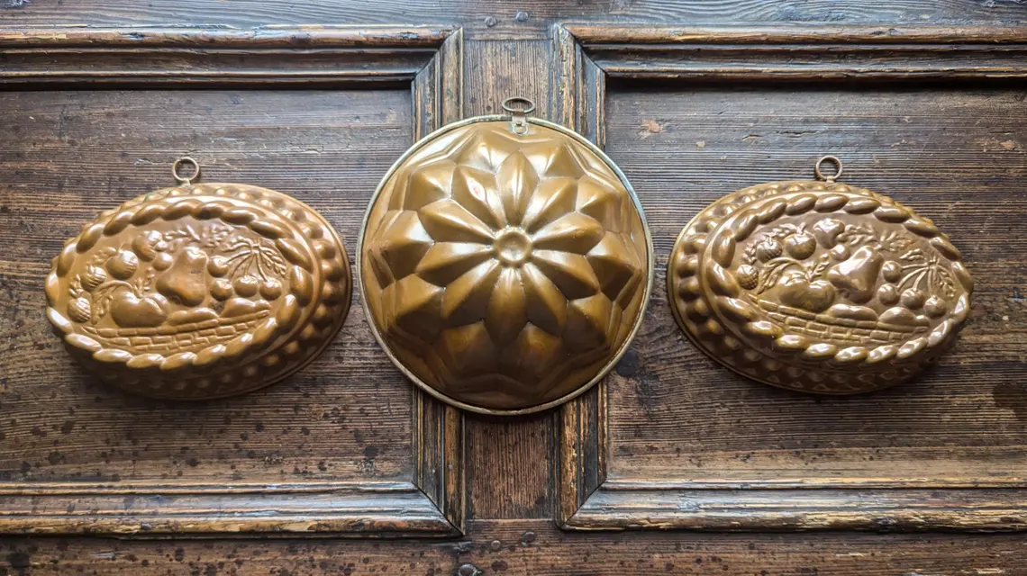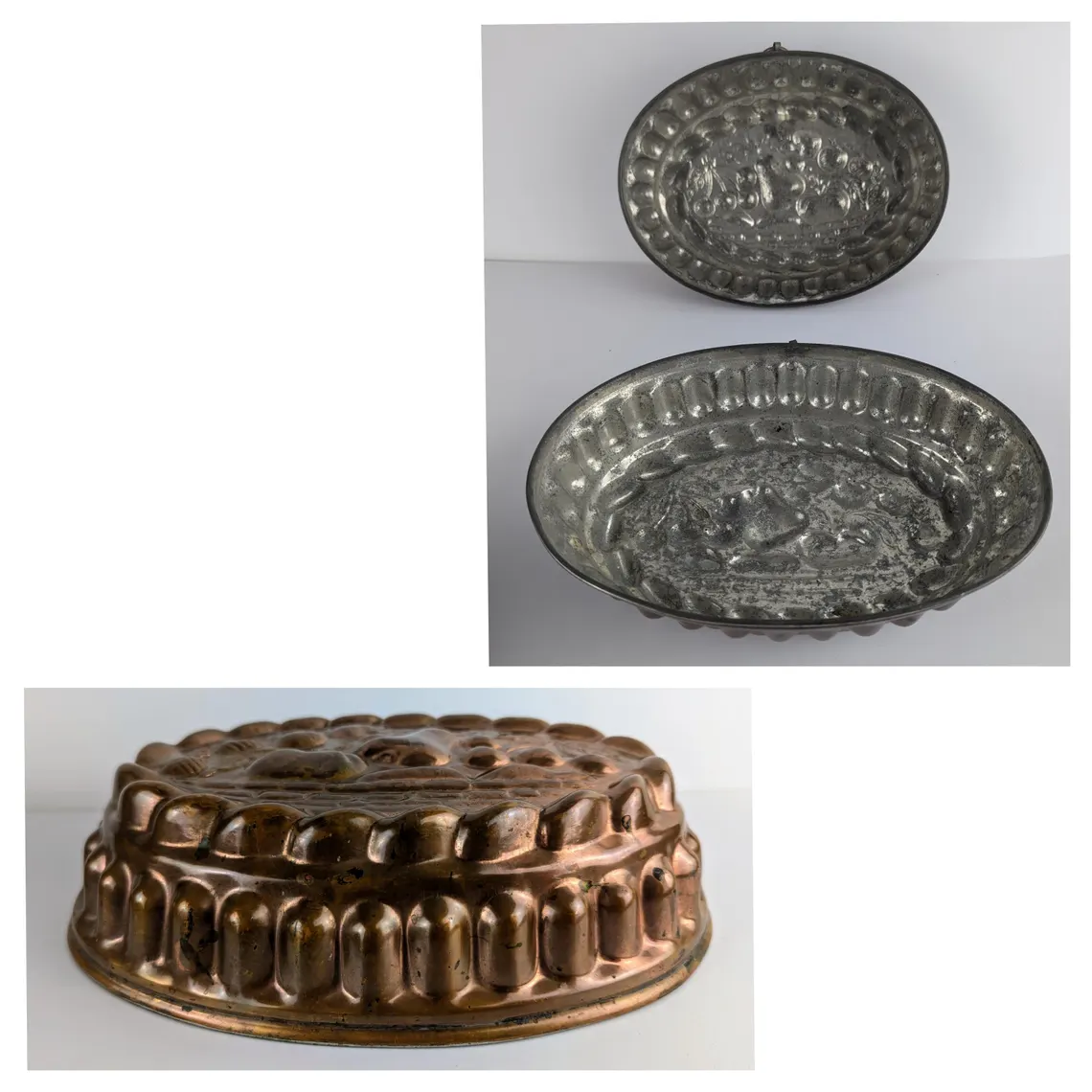 A wonderful set of three antique copper jelly or blancmange moulds.