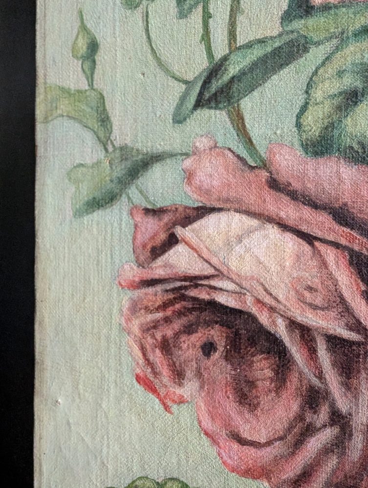 A beautiful floral oil on canvas painting dating from around the first decade or two of the 1900s, of paddles pink and white roses.