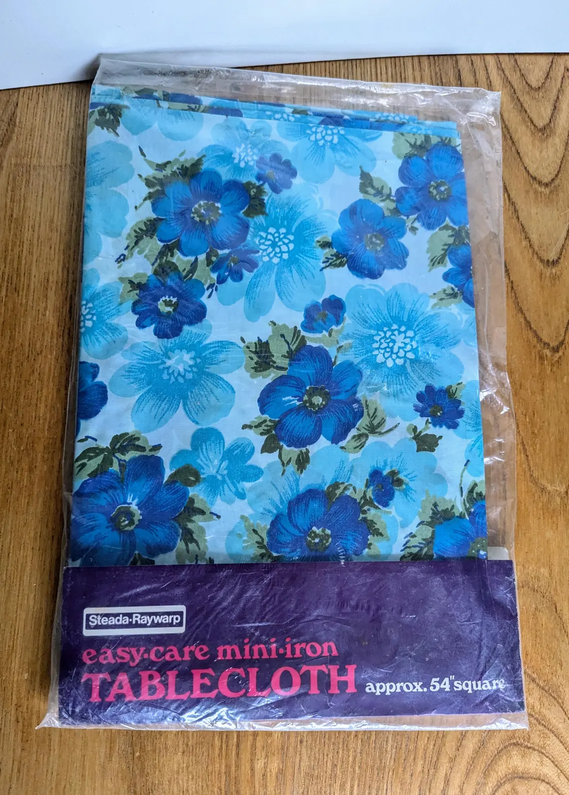 The tablecloth measures approx. 134cm X 134cm. The packet states approx 54″².