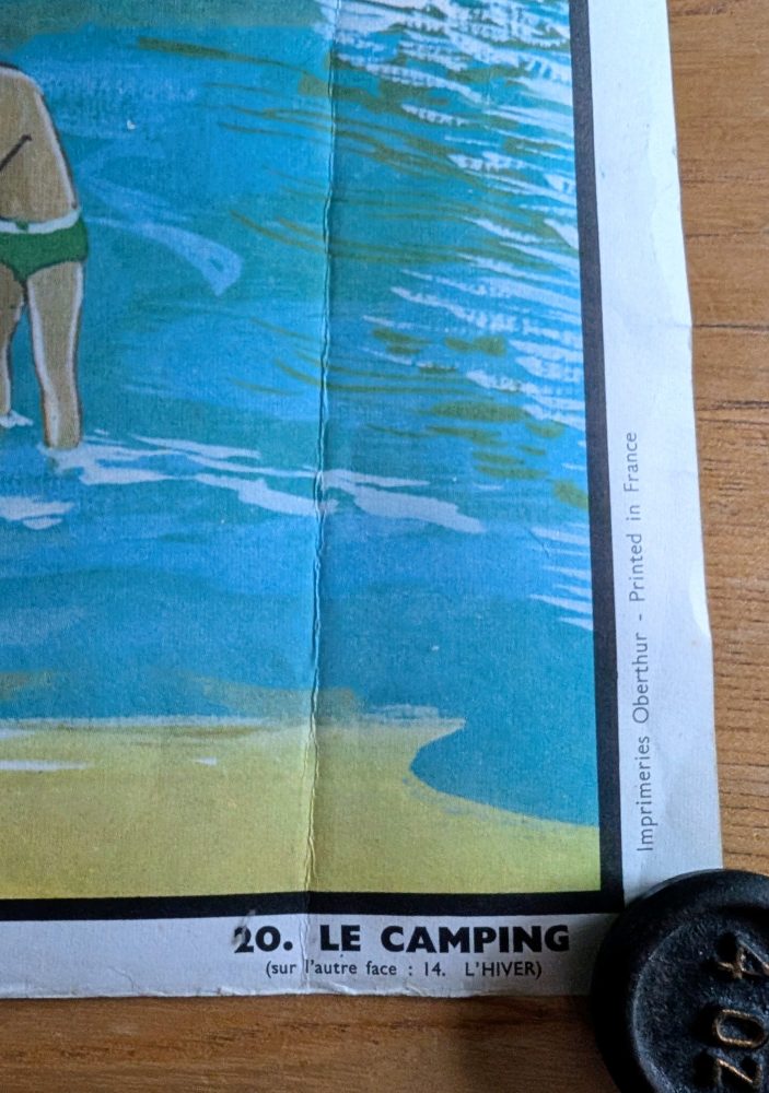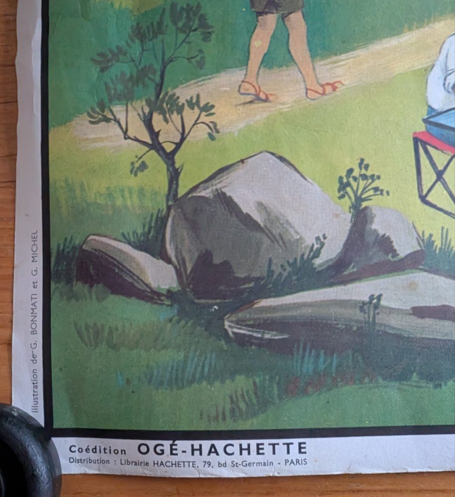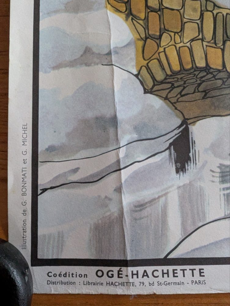 Originally distributed by Libraries Hachette on Boulevard St Germain in Paris, these would have been printed and used in a French school around the 1950s. There are some creases in the poster from age and use.
