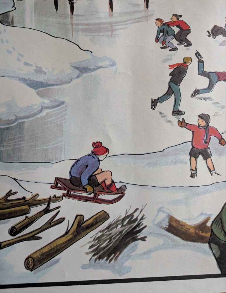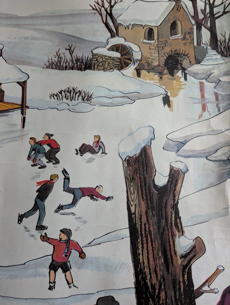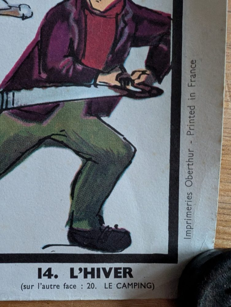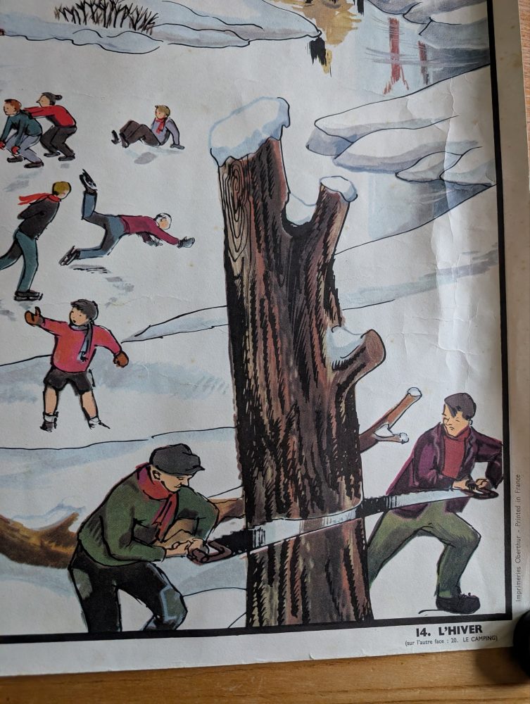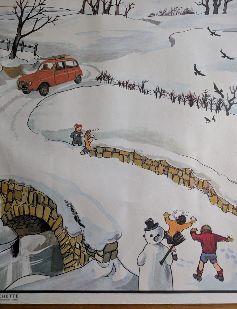 To the reverse, ‘L’hiver’ shows an old winter scene with snow and ice and plenty of shenanigans and classroom talking points.