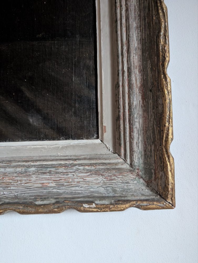 Large in scale, this painting which was sourced in France, was made on canvas which was then stuck to board.
