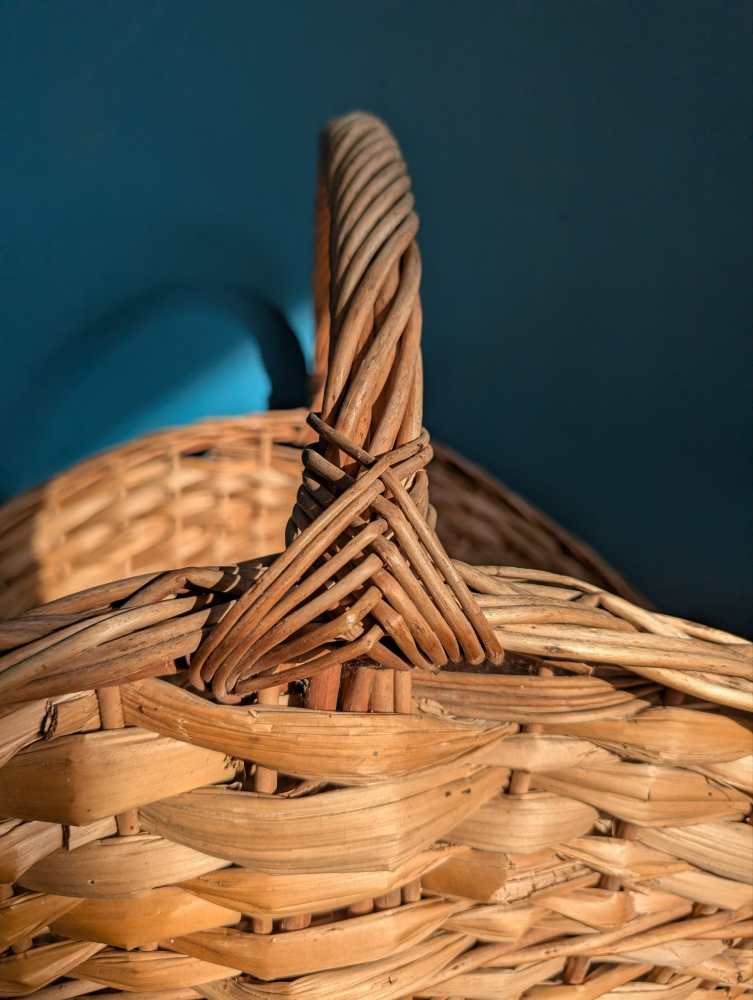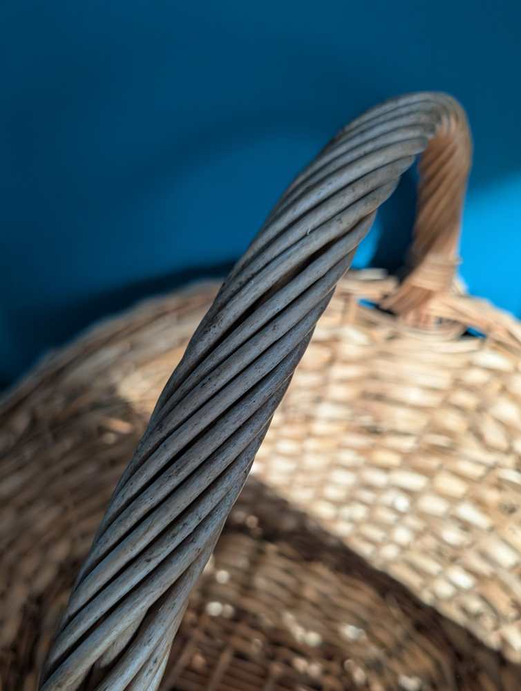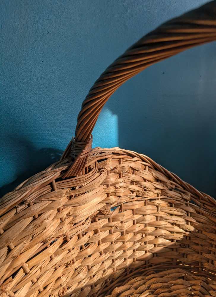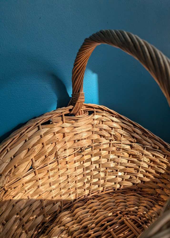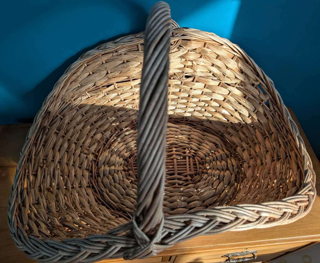 A wonderful, very large Somerset flower gathering basket, with wound loop carry handle.