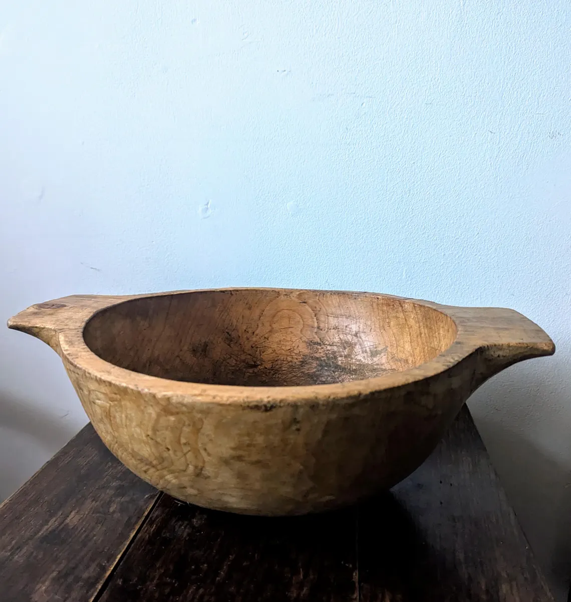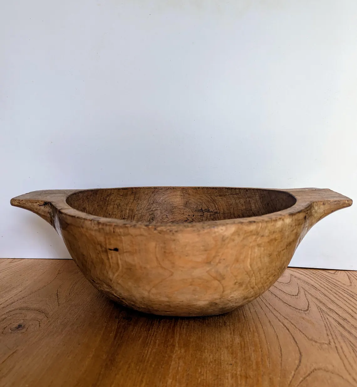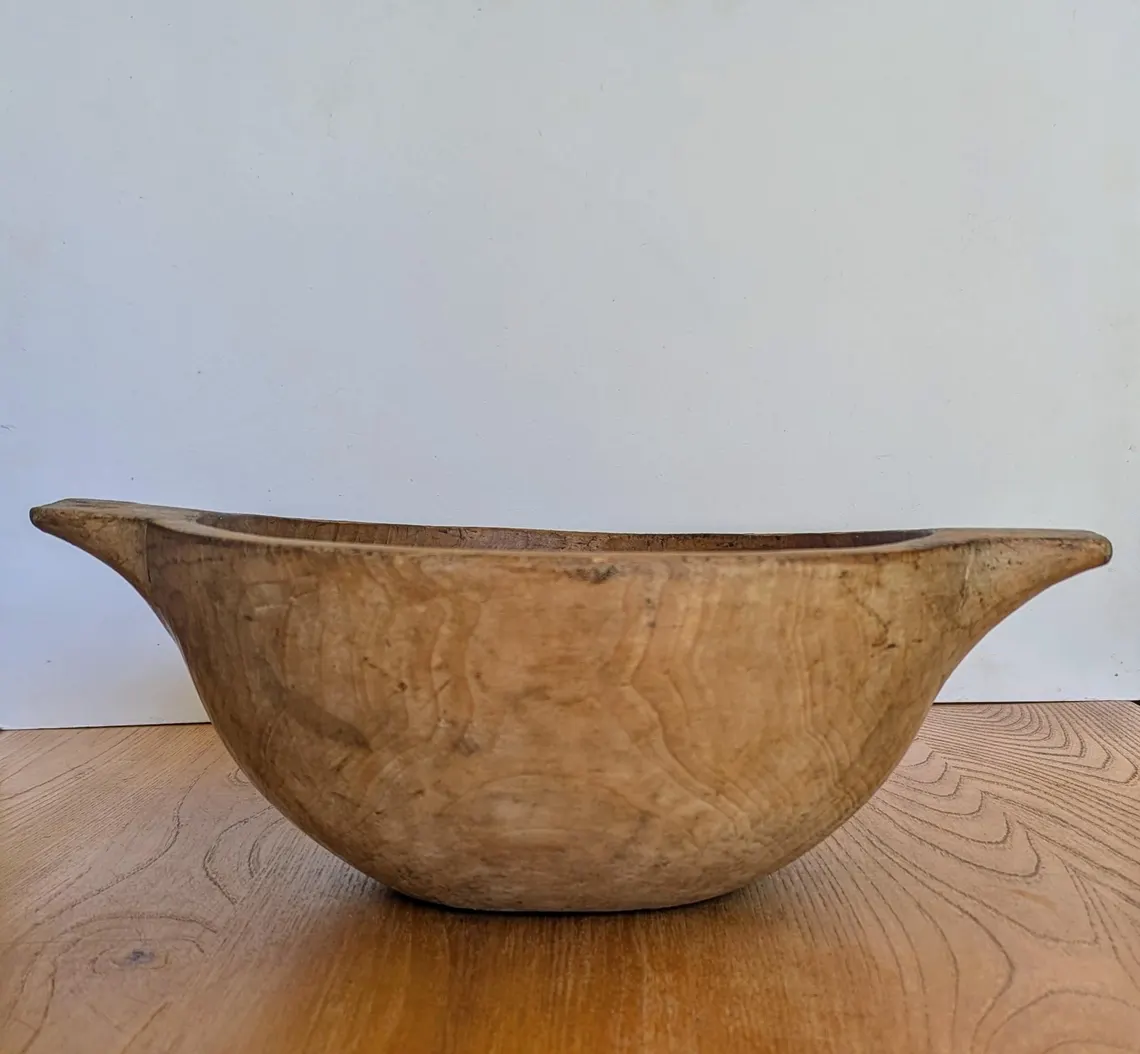 A gorgeous, large French wooden fruit bowl with deep sides.