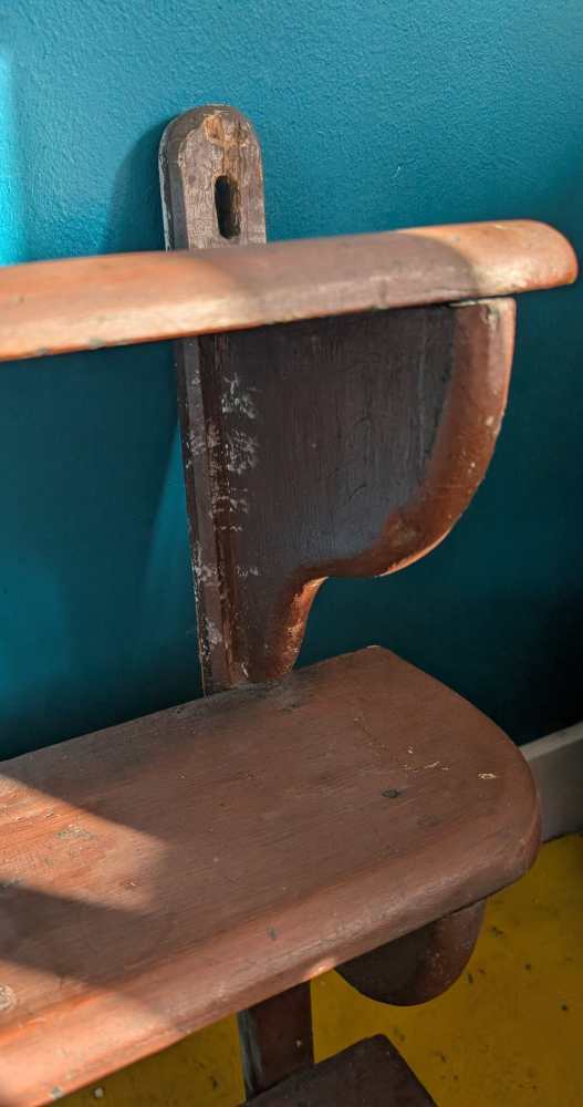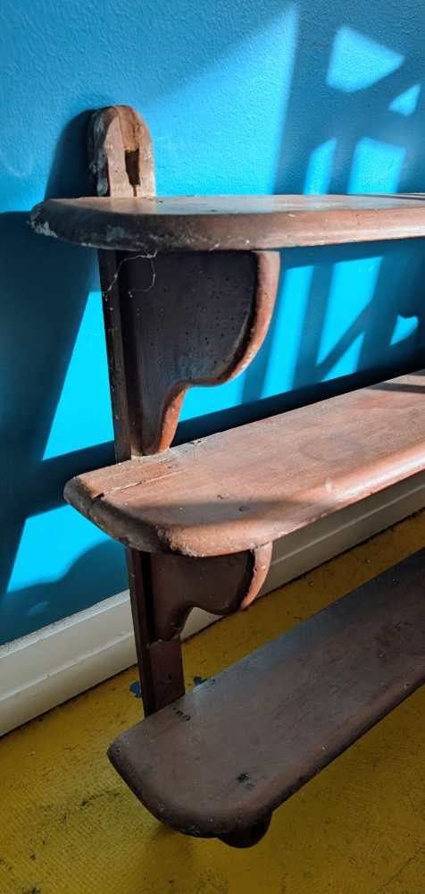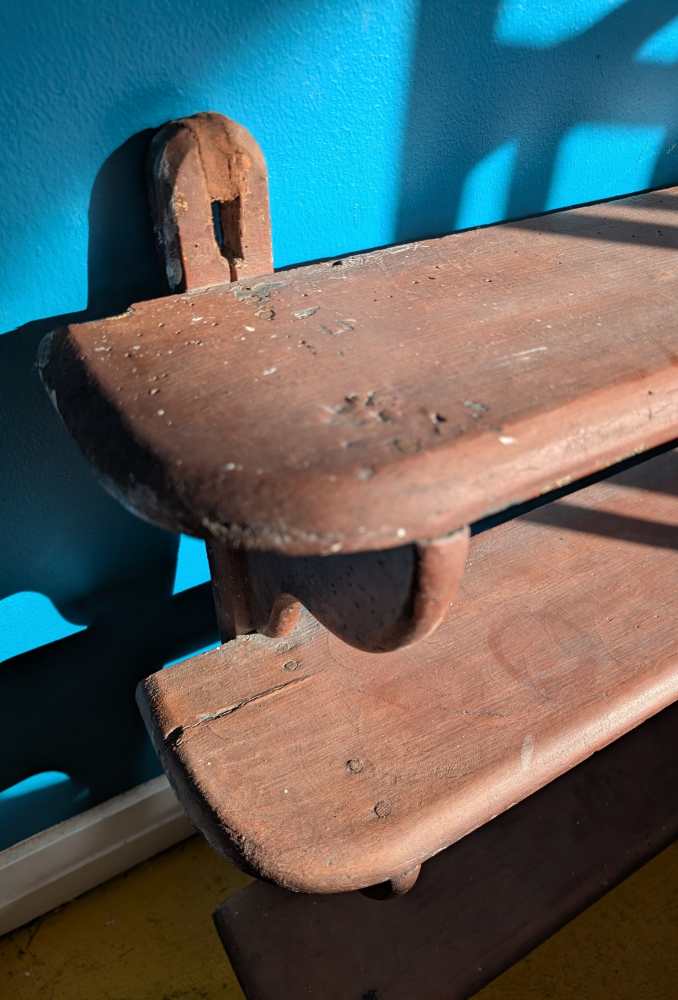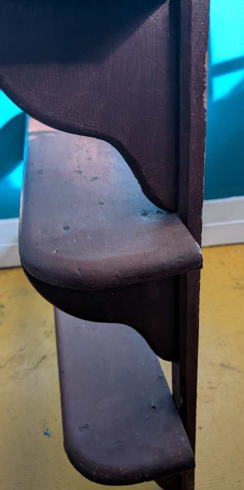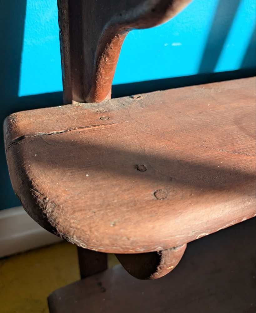 With a simple rustic design and naively cut slots on the uprights, this has a real charm to it.