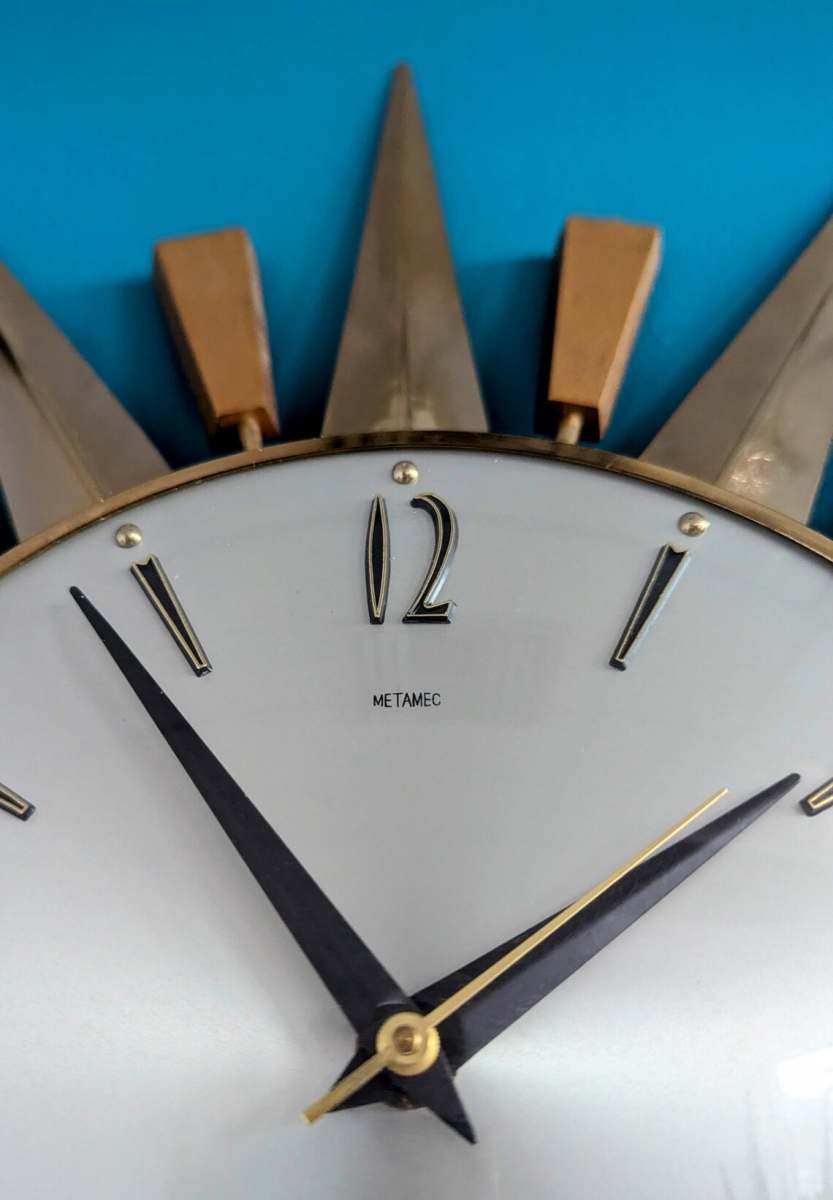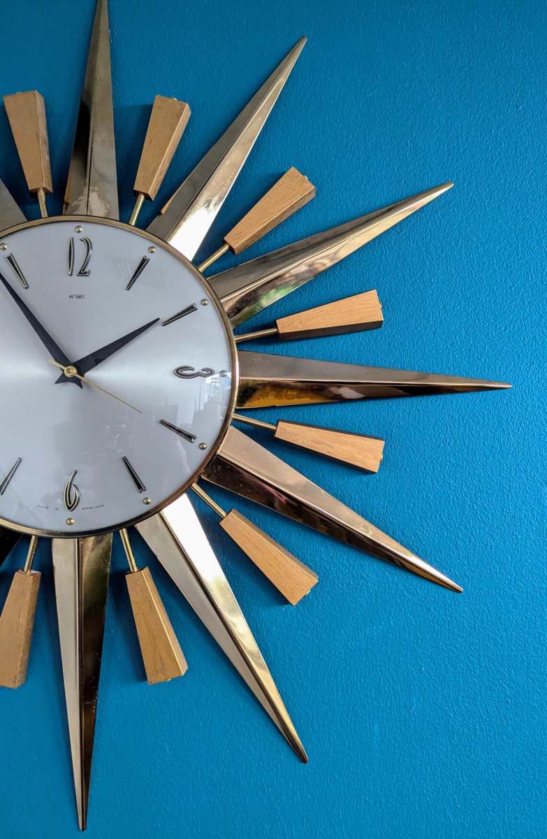 This is the classic, original starburst by perhaps the most famous, leading producer of clocks in England of the period, Metamec.