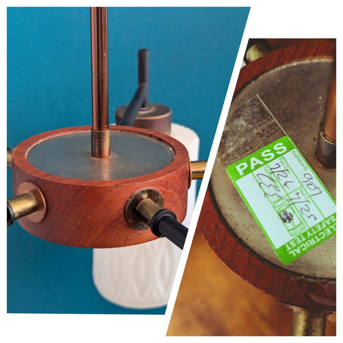 This light fitting has been PAT tested (in late July 2024) and bears the Pass certificate as pictured.