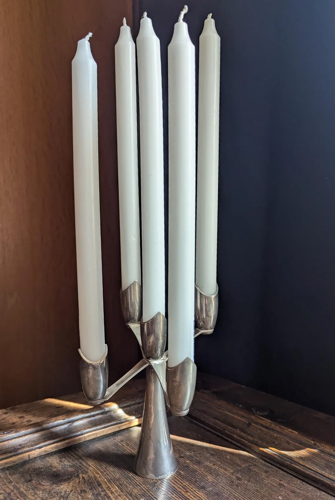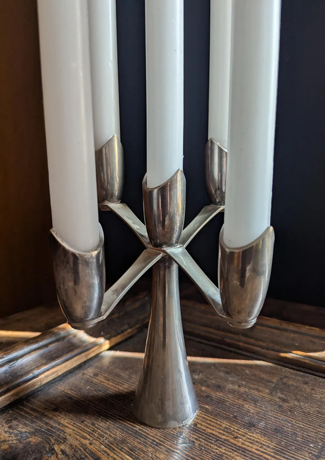 A fantastic midcentury silver plated 5 arm candelabra by Grenadier of England.