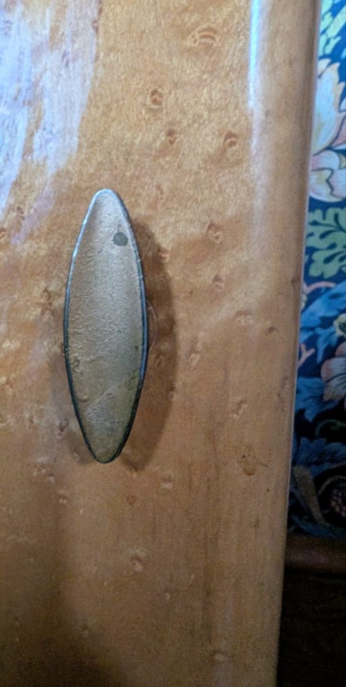 In very good condition, save for some light damage to the front left top corner, as photo, and where the handle has been turned at some point and left some scarring to the timber behind the handle.