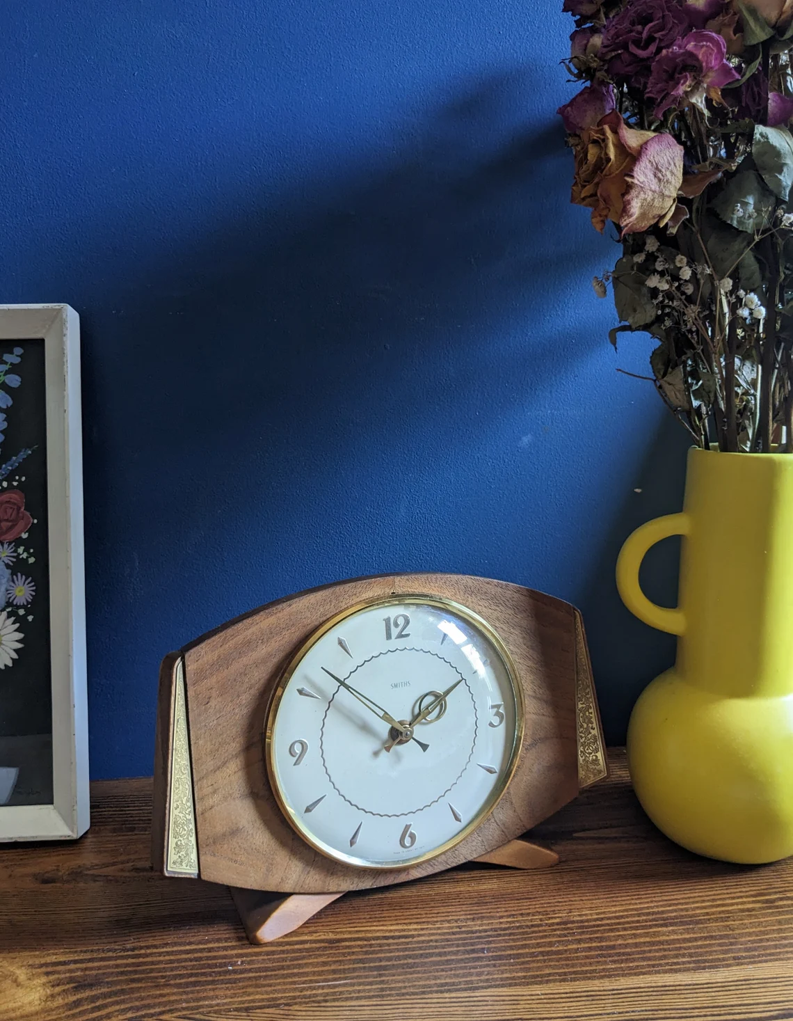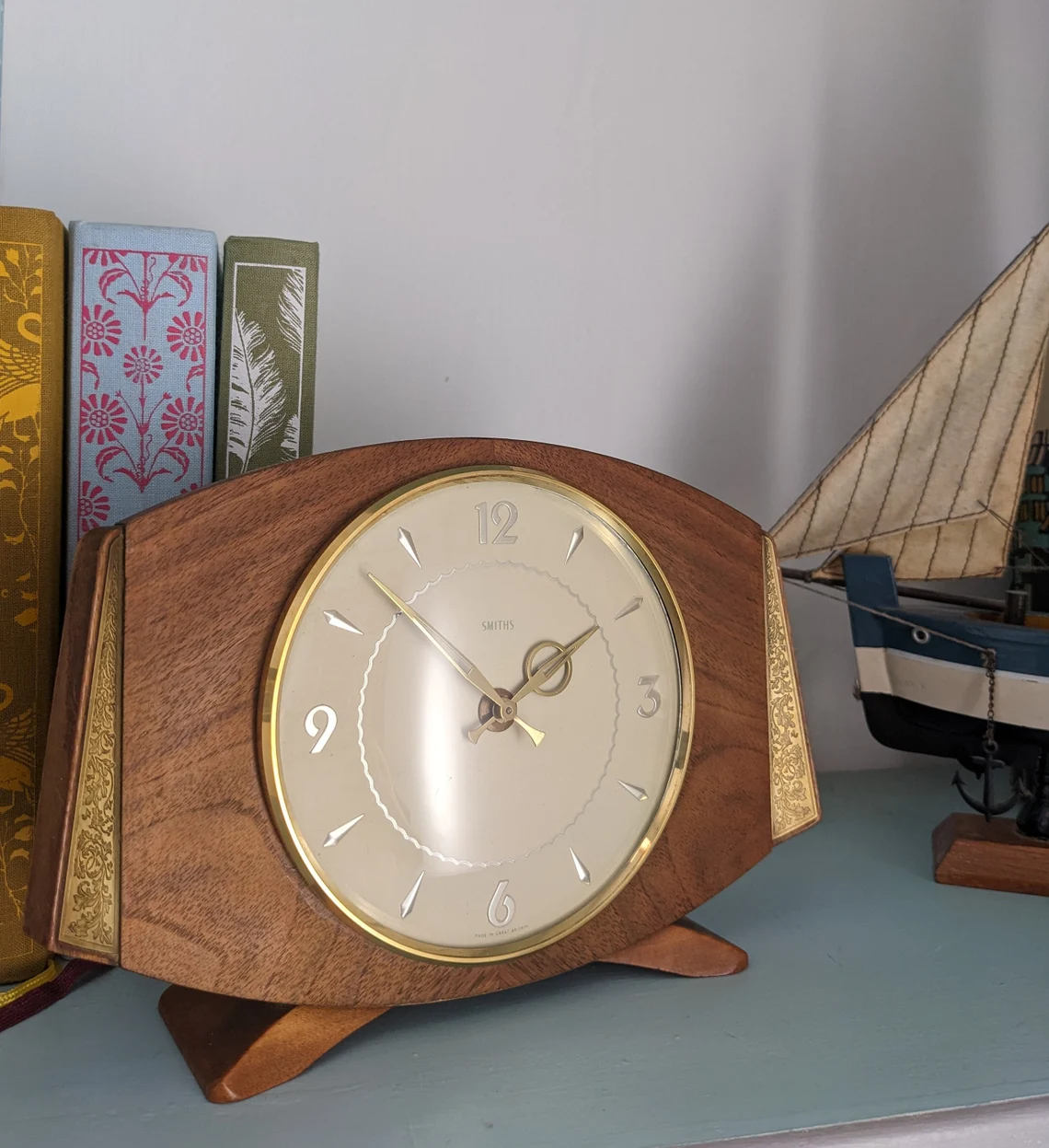Midcentury Smith’s mantle clock – working well, serviced, with original movement