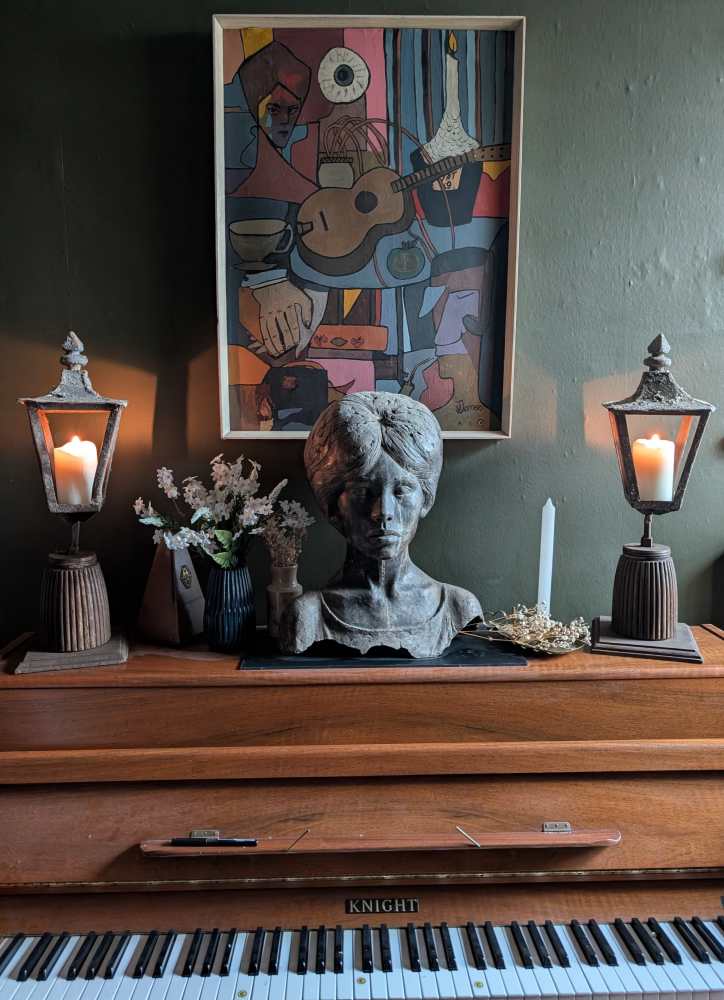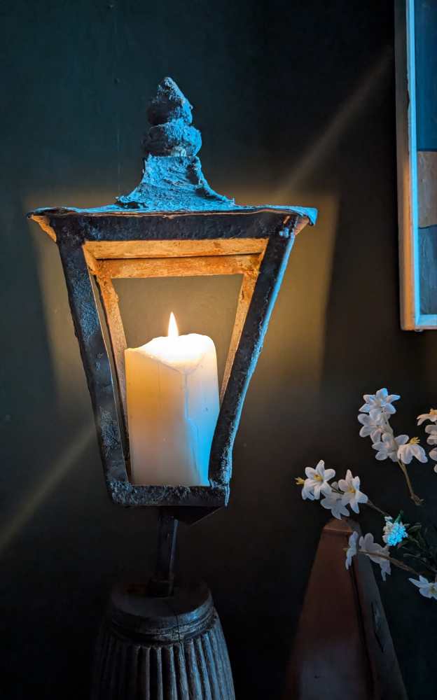 A wonderful pair of old candle lanterns, used by the cast onstage in the winter snow scene in Puccini’s opera La Bohème performed by the Welsh National Opera.