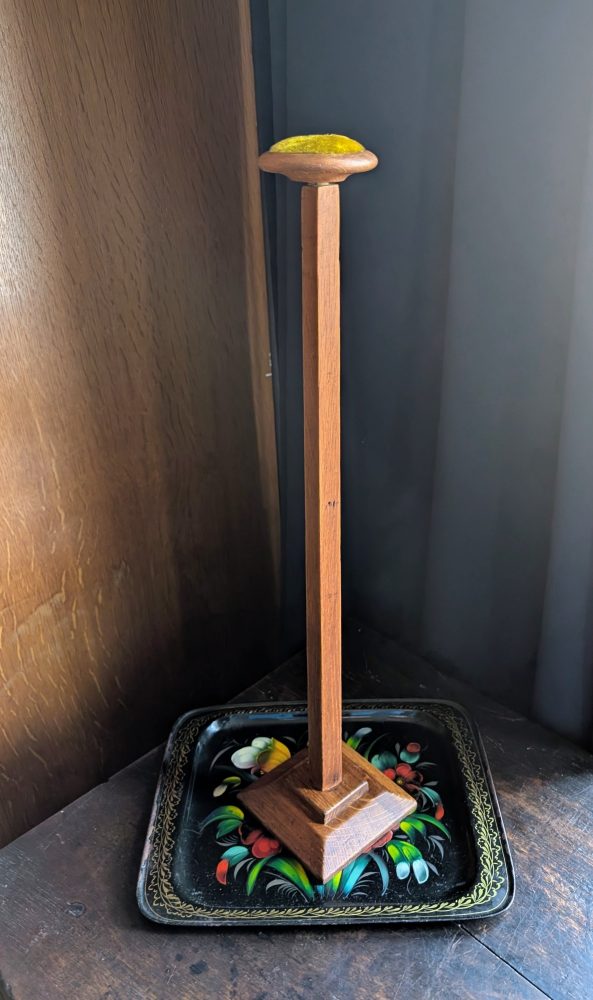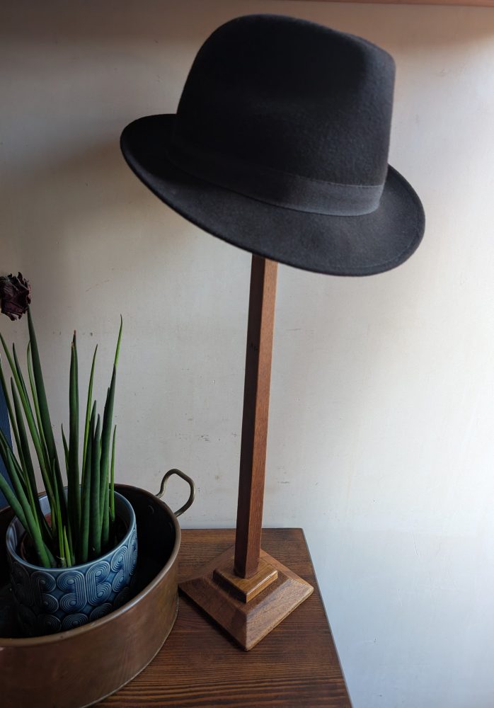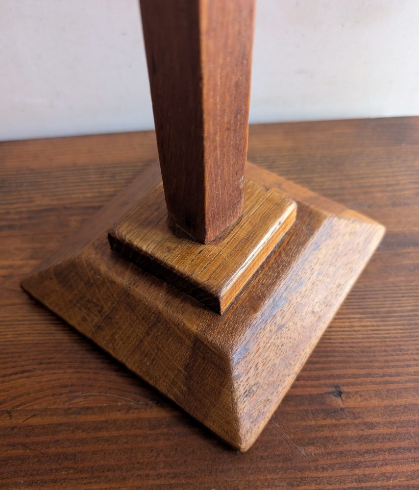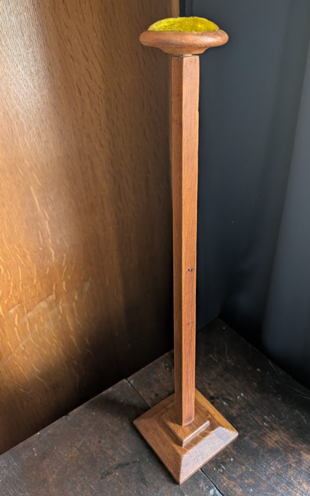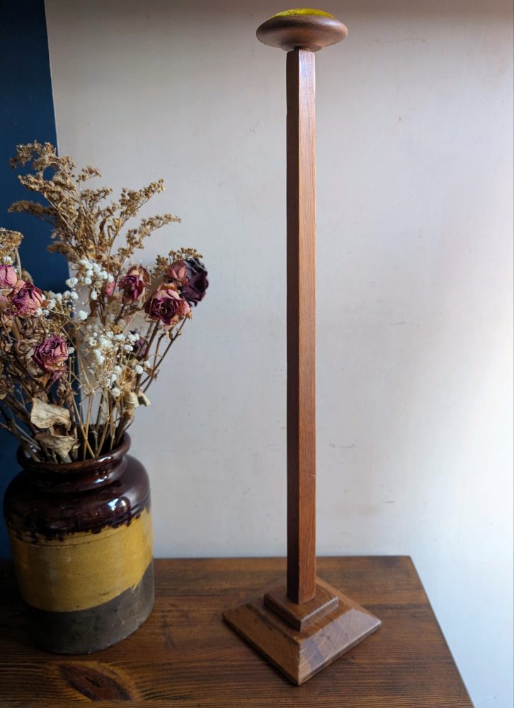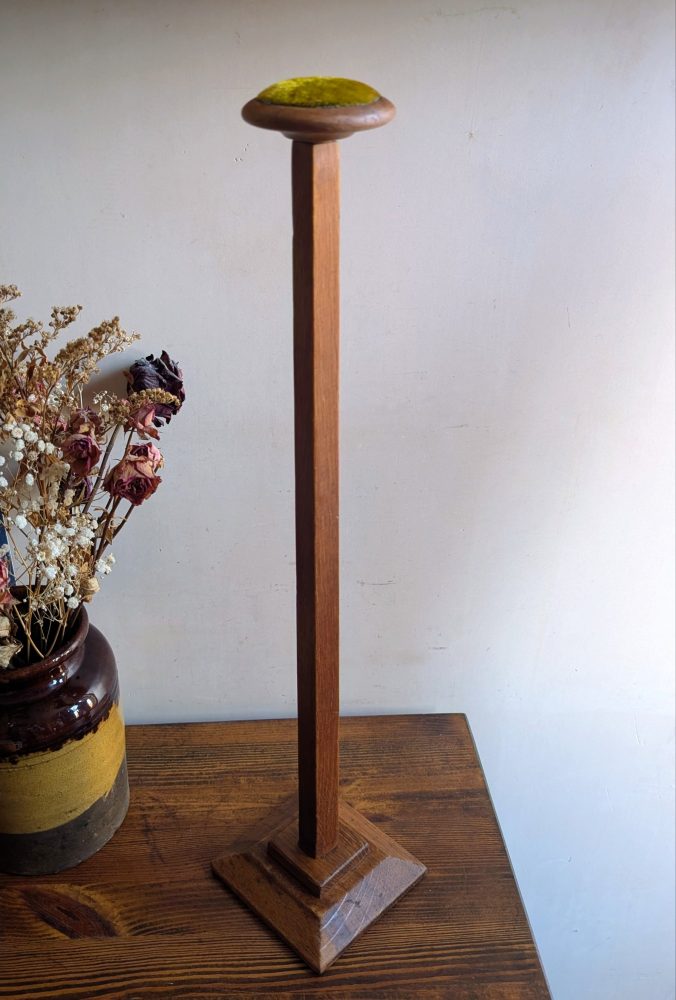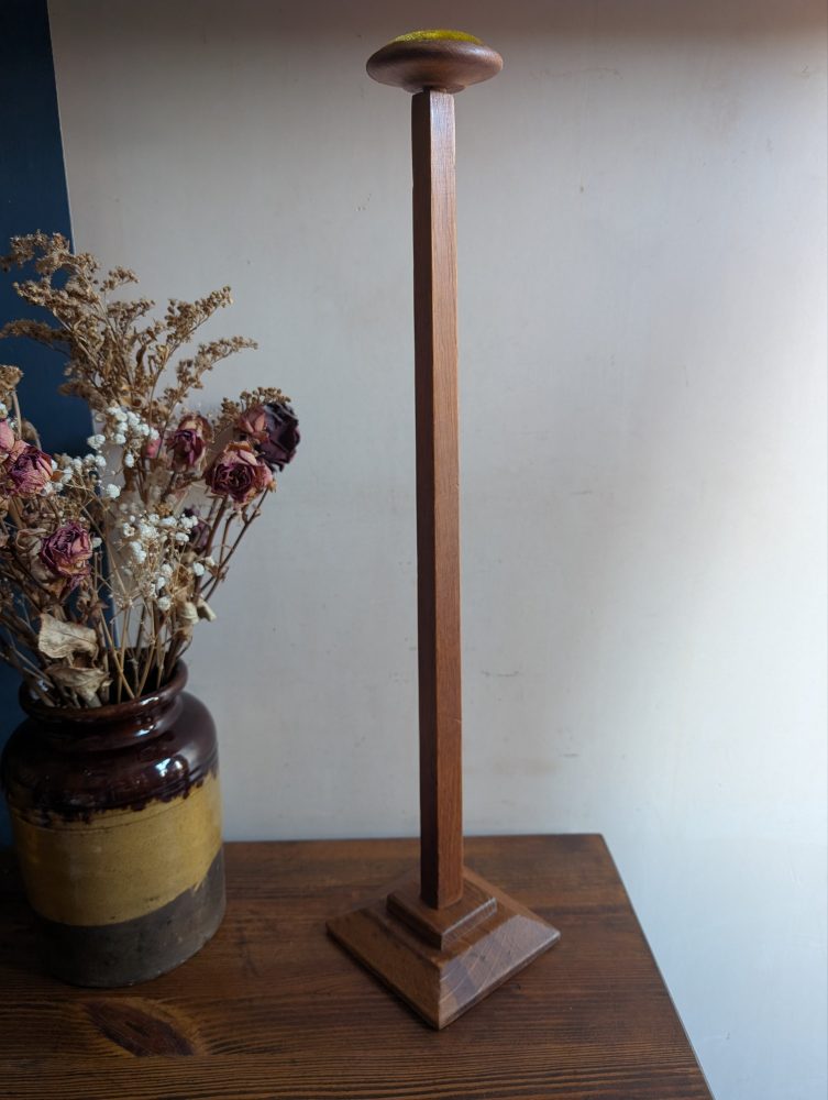 An early 1900s tall golden oak hat or wig stand.