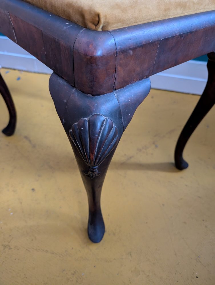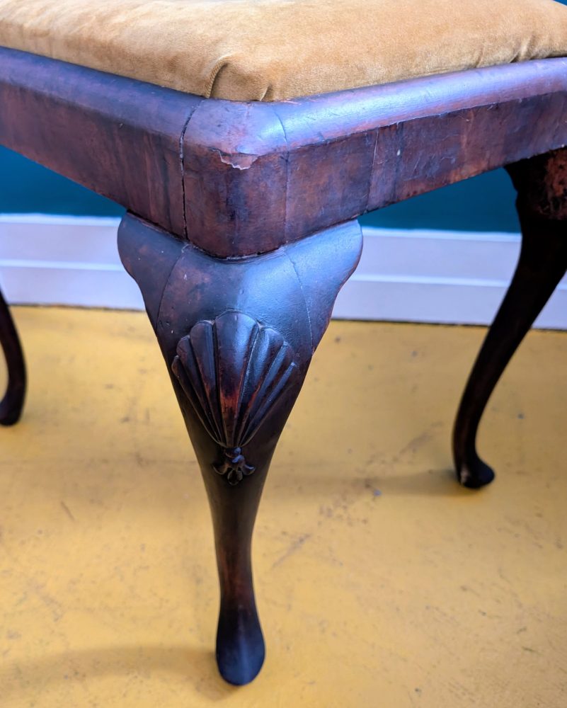 A beautiful, if down at heel Walnut Queen Anne revival antique dressing stool.