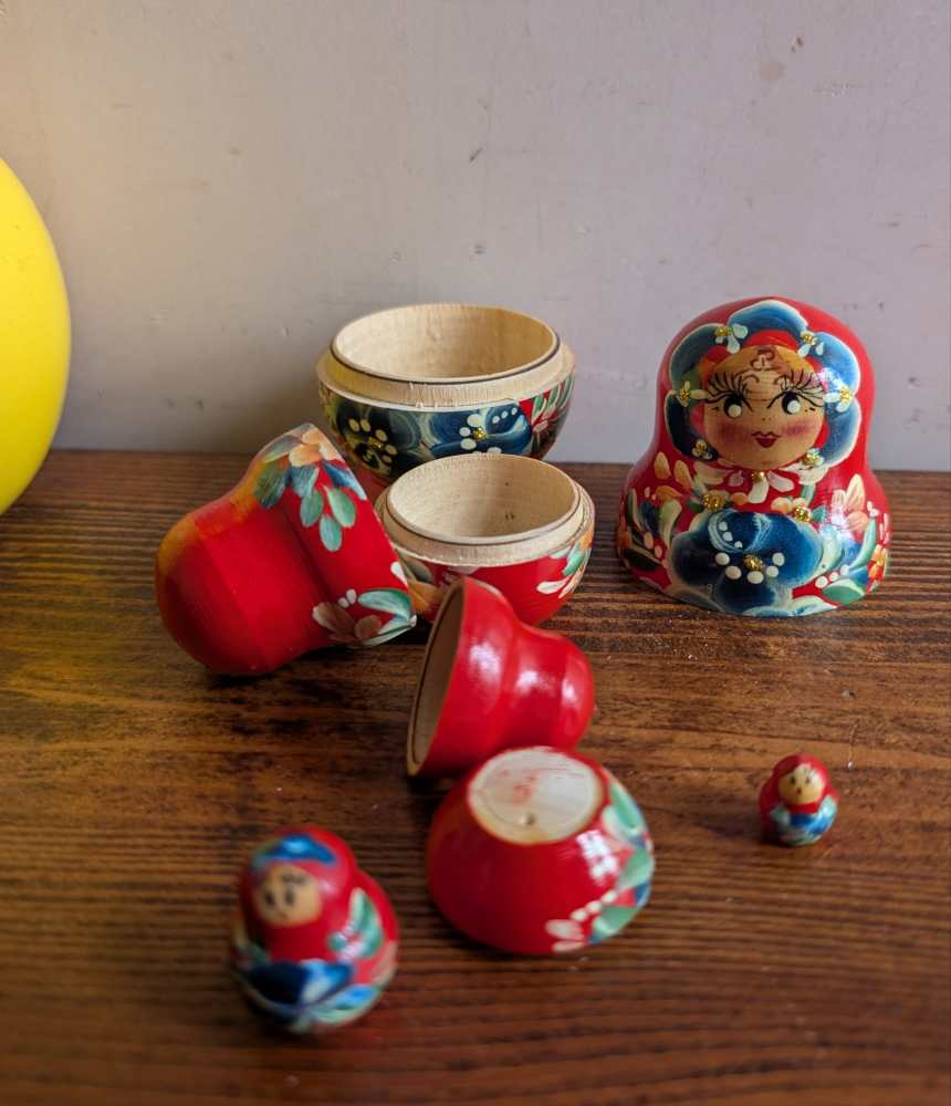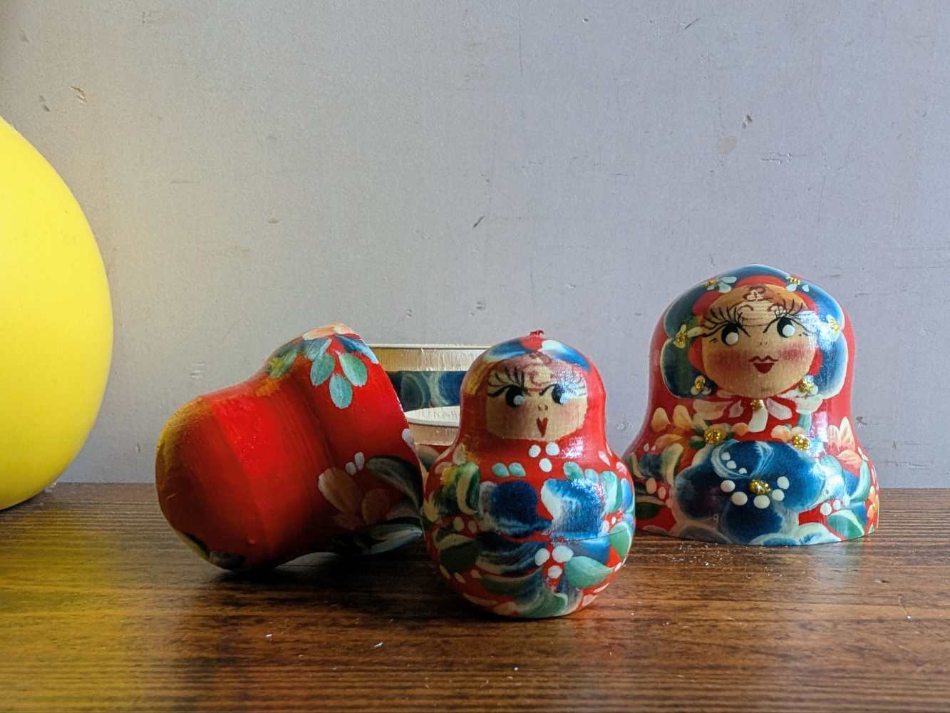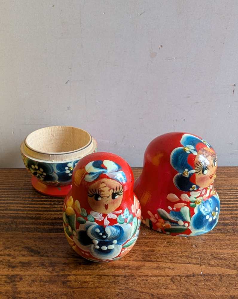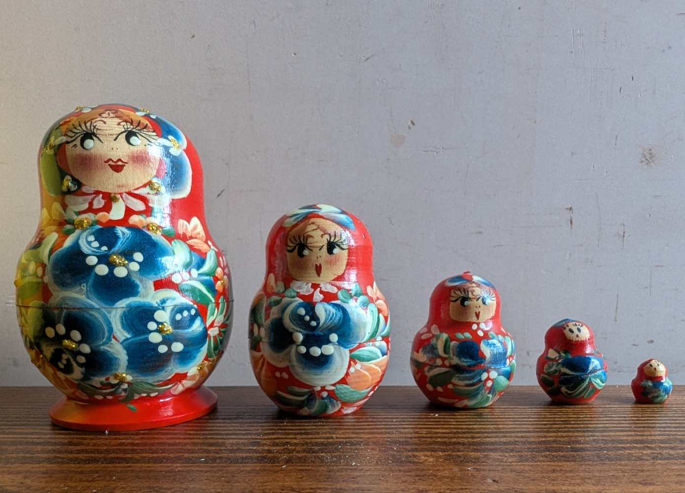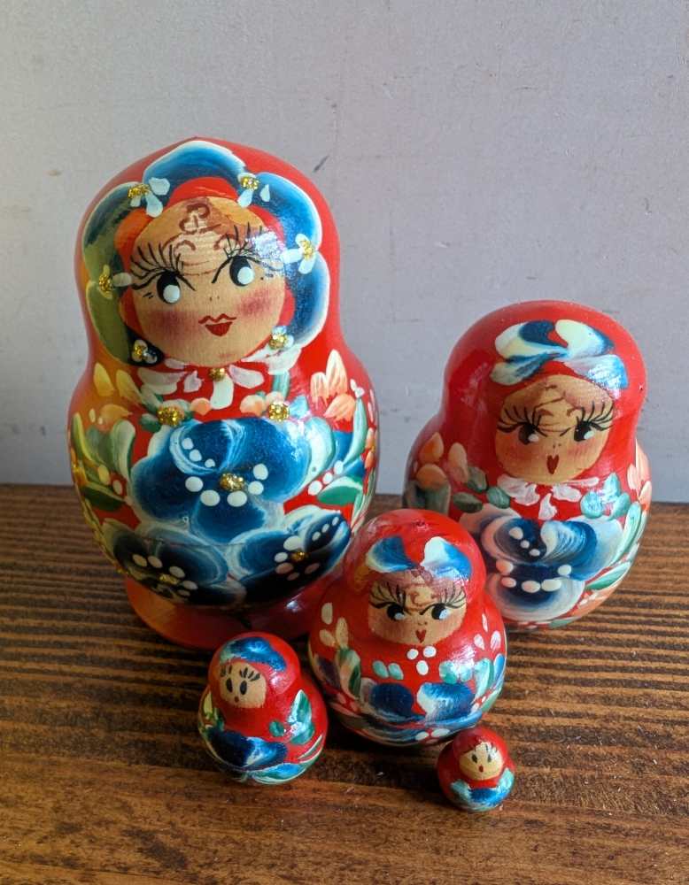 Set of small vintage Russian dolls, 5 wooden nesting Matryoshka dolls