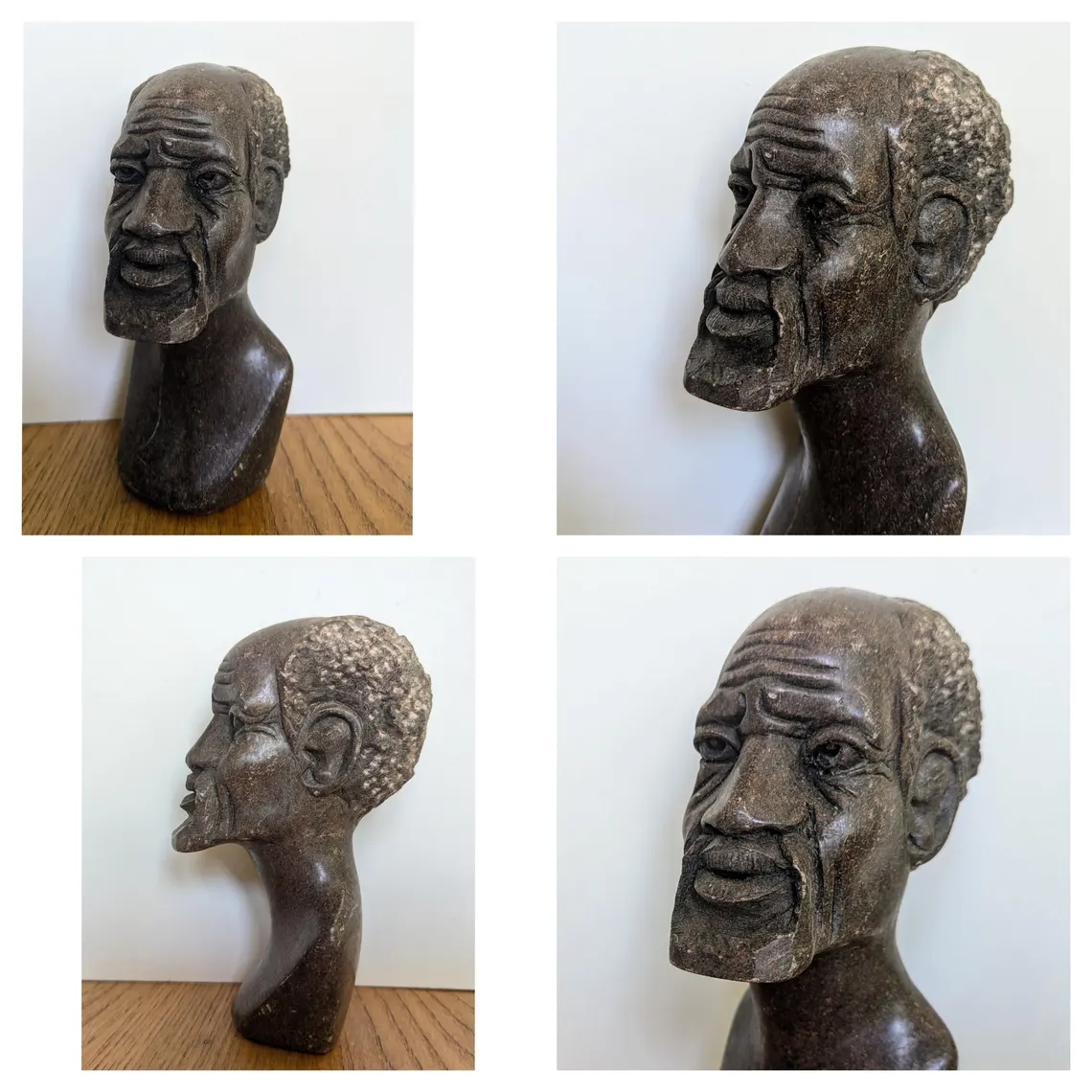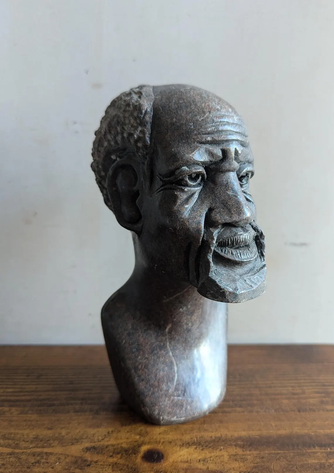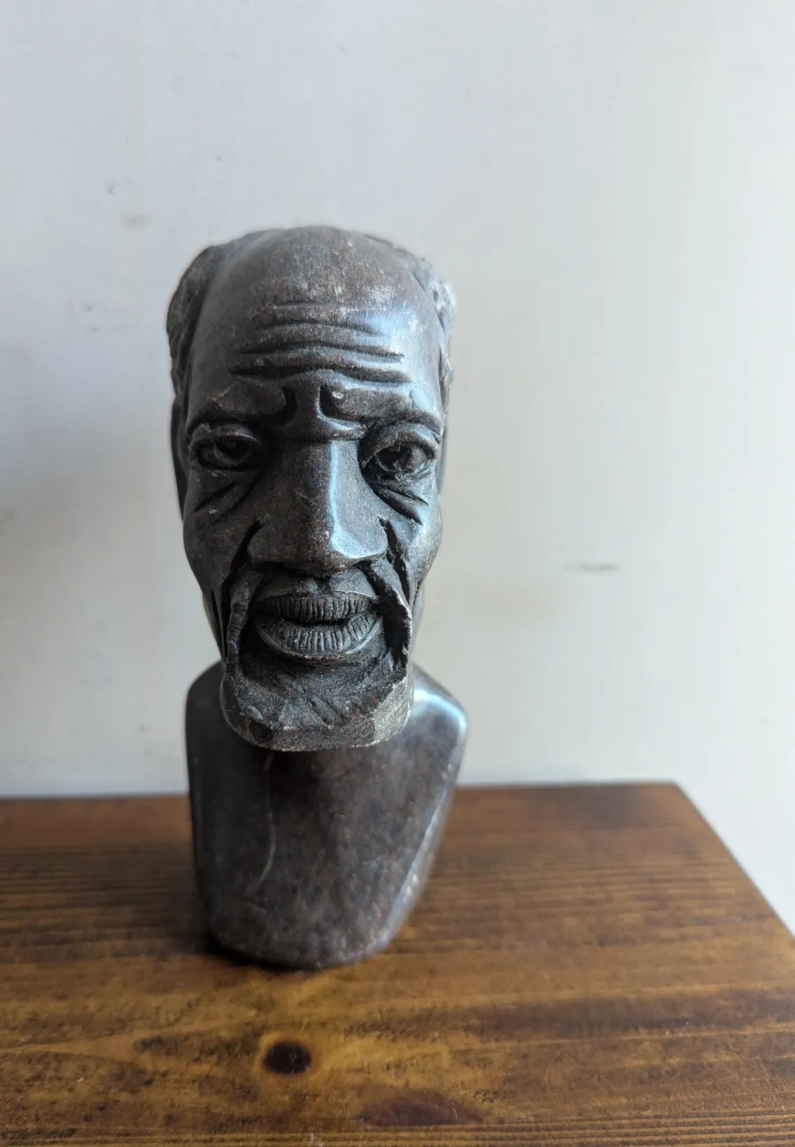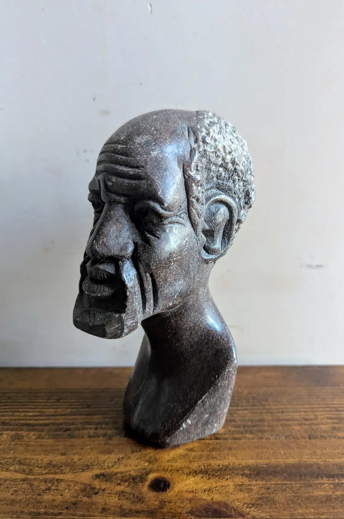 Soapstone bust sculpture of African bearded man