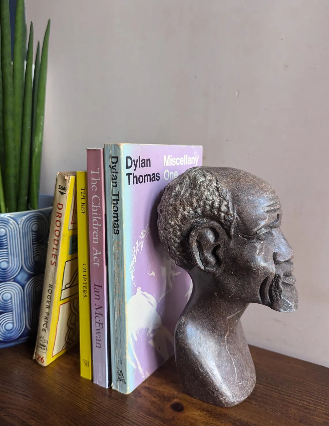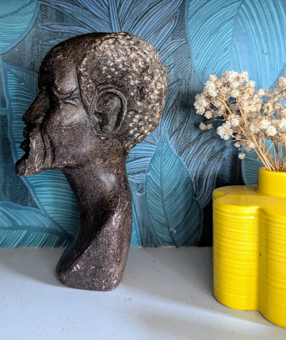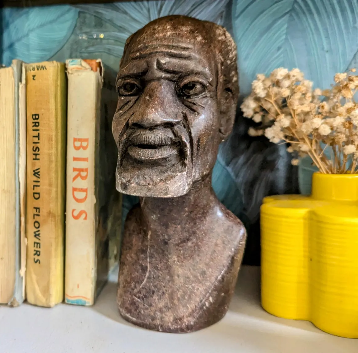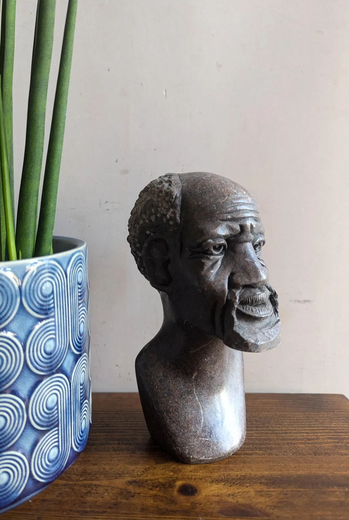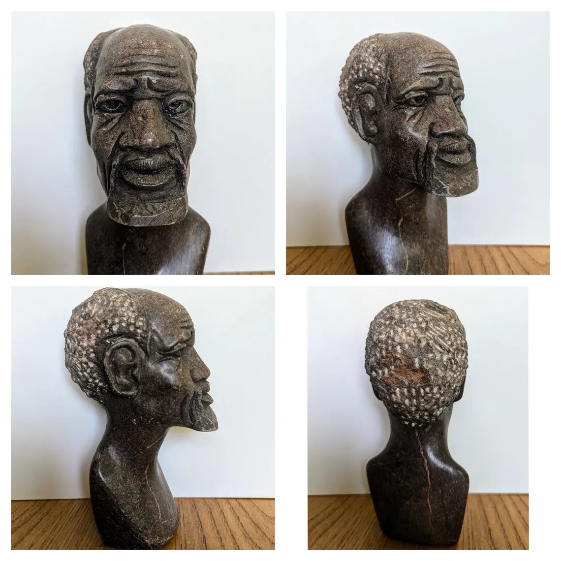 Soapstone bust sculpture of African bearded man