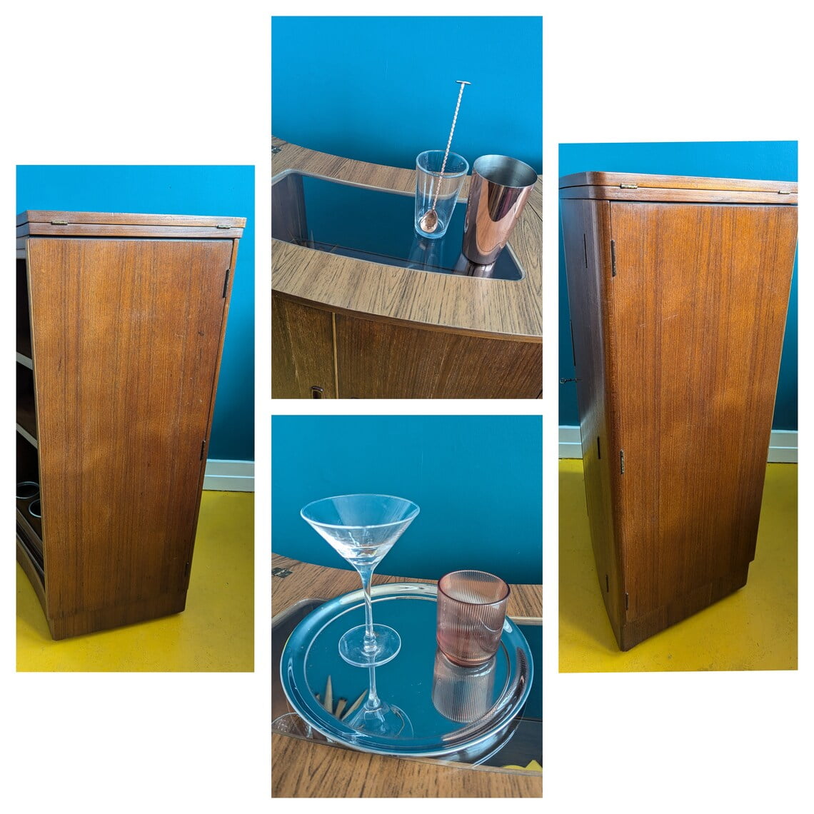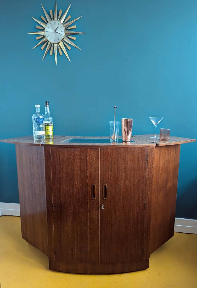Spectacular 1960s Turnidge teak cocktail bar and drinks cabinet with accessories