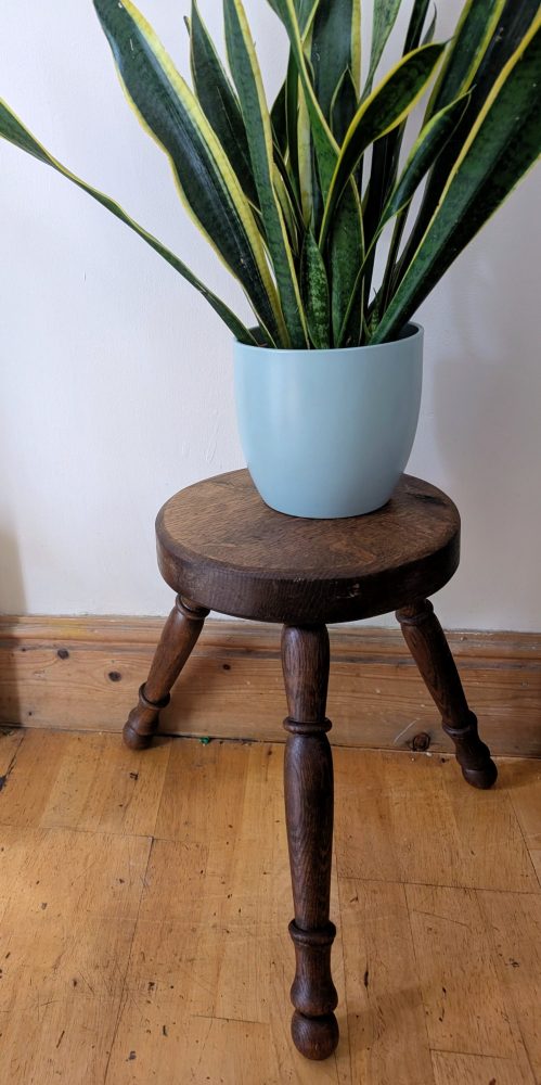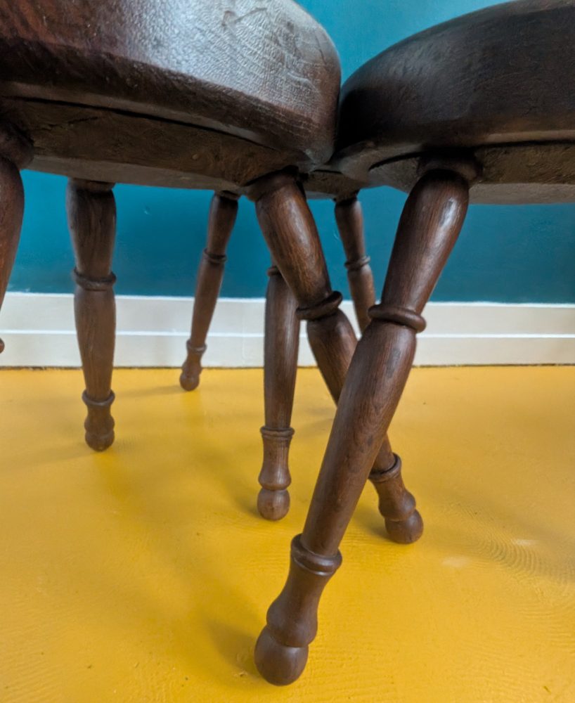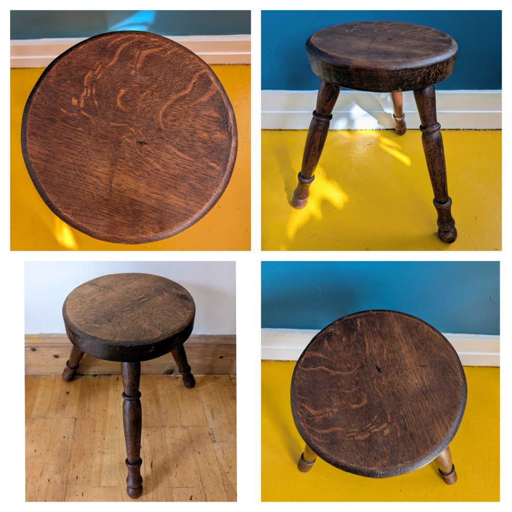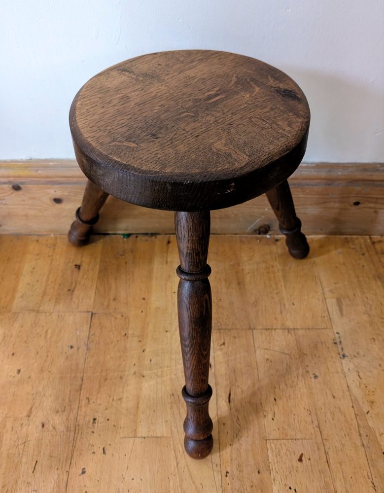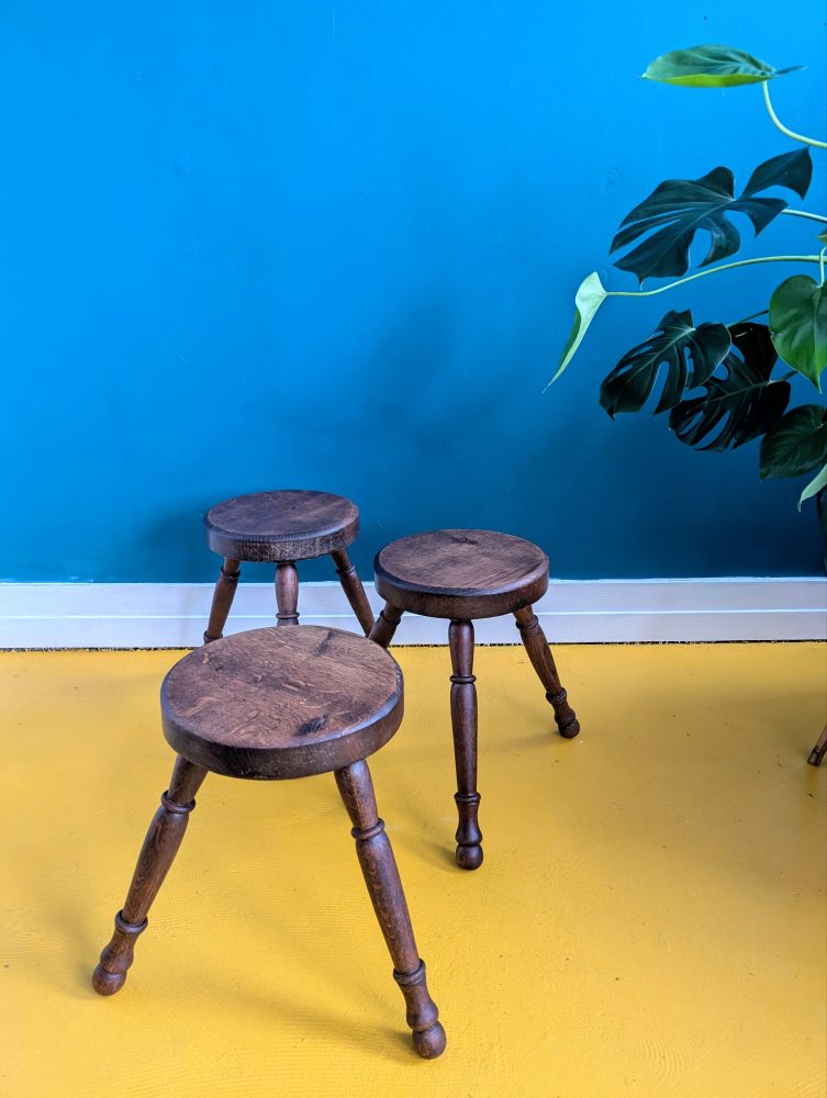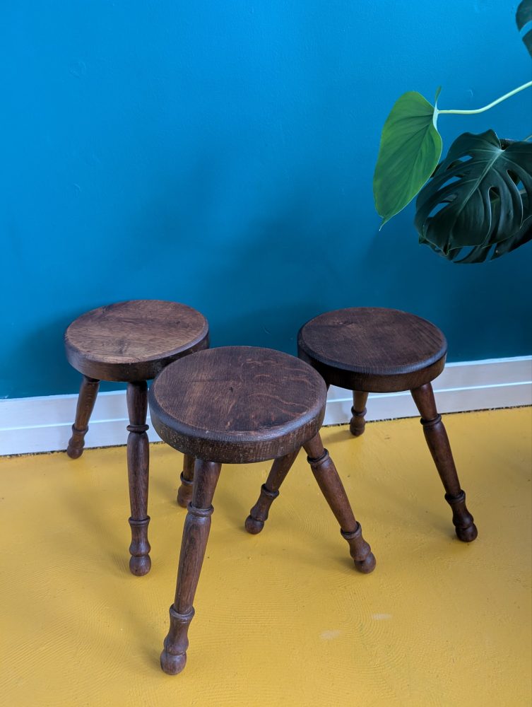 A lovely trio of French oak round stools, on turned tripod legs. These were originally sourced from Brittany.