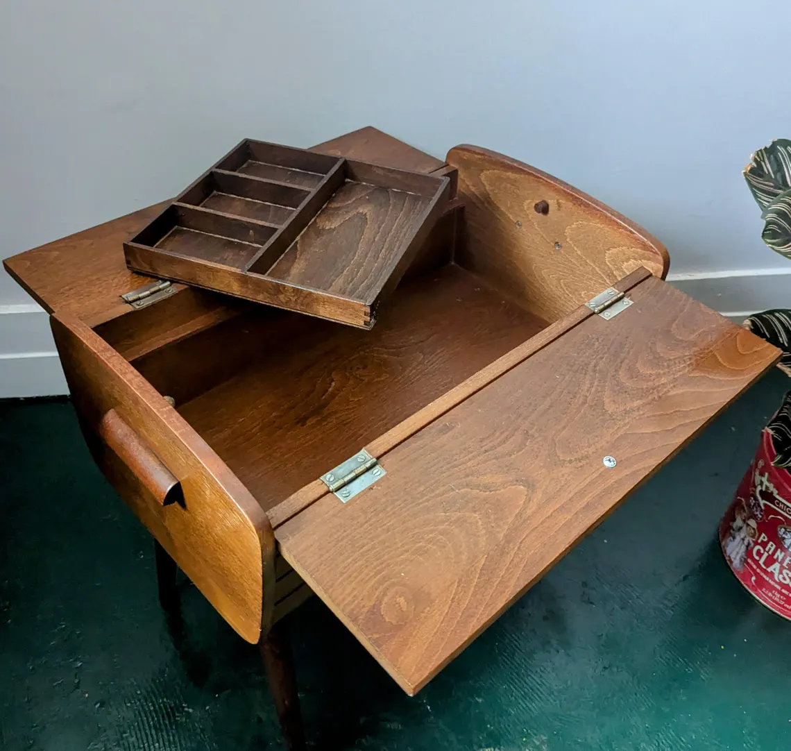 Vintage 1960s Sewing Box with tapered legs
