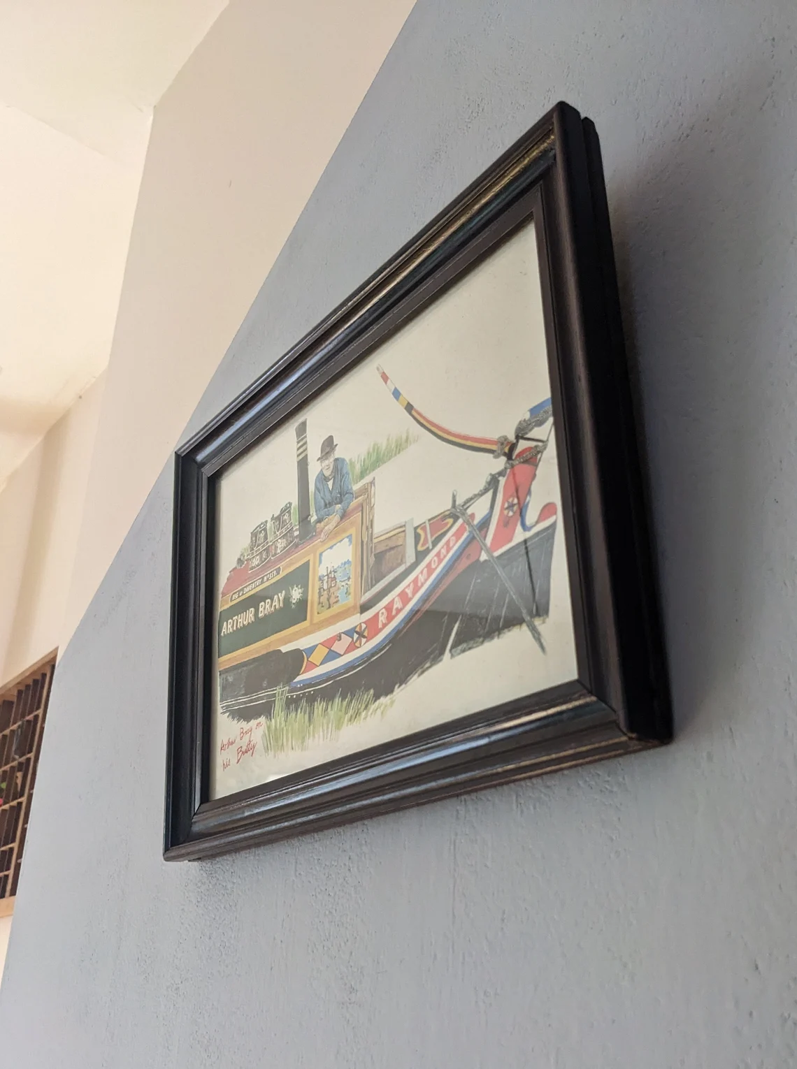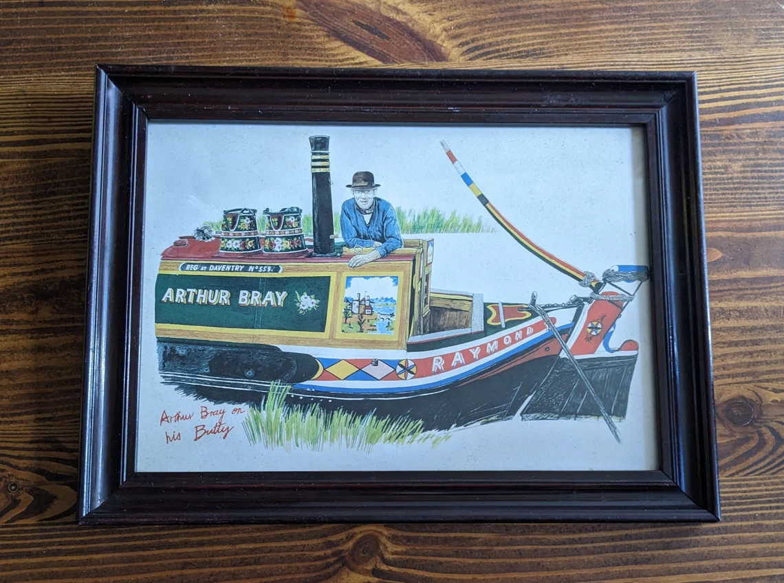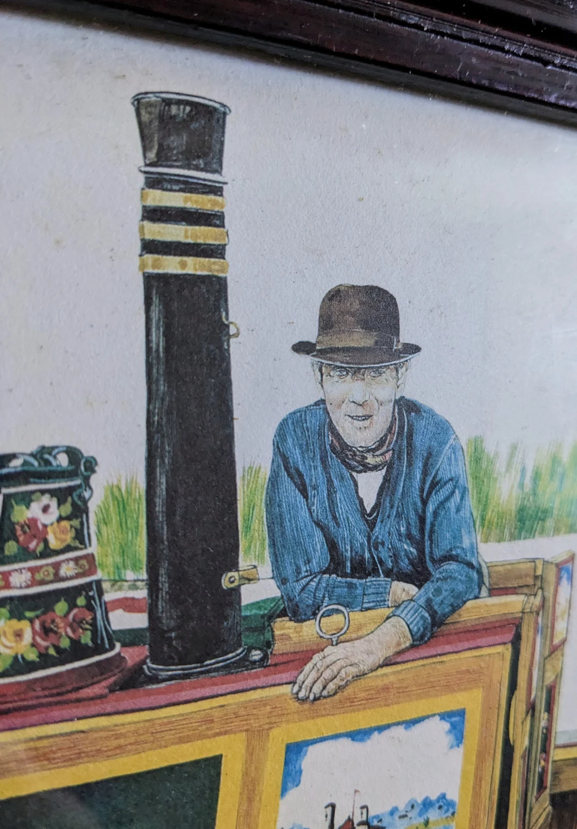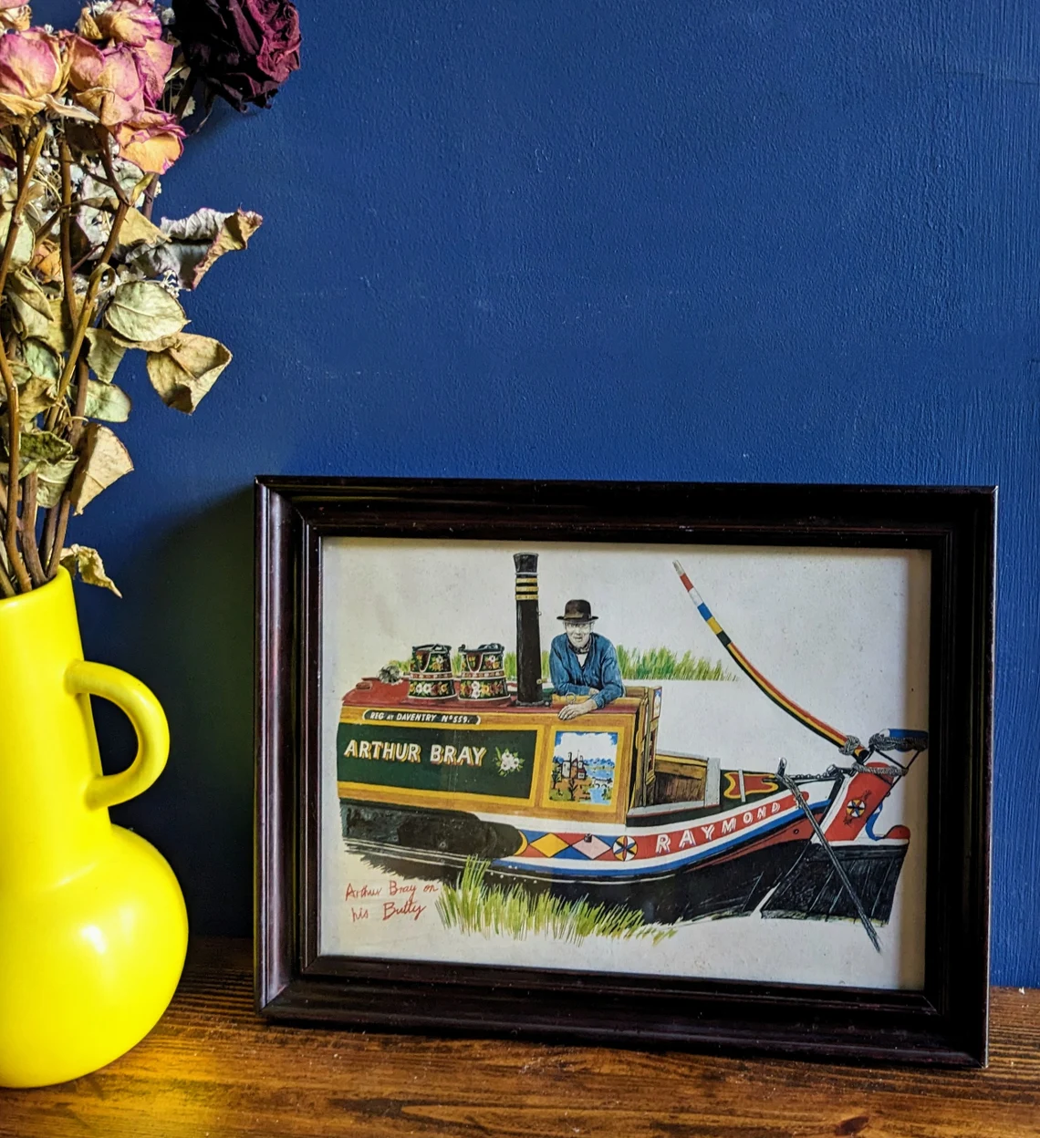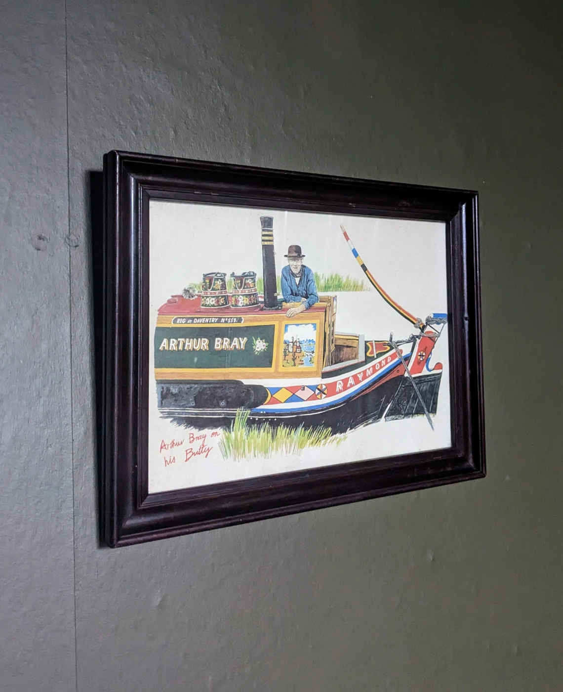 Vintage 1978 framed picture of legendary English bargeman Arthur Bray