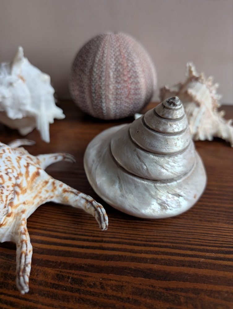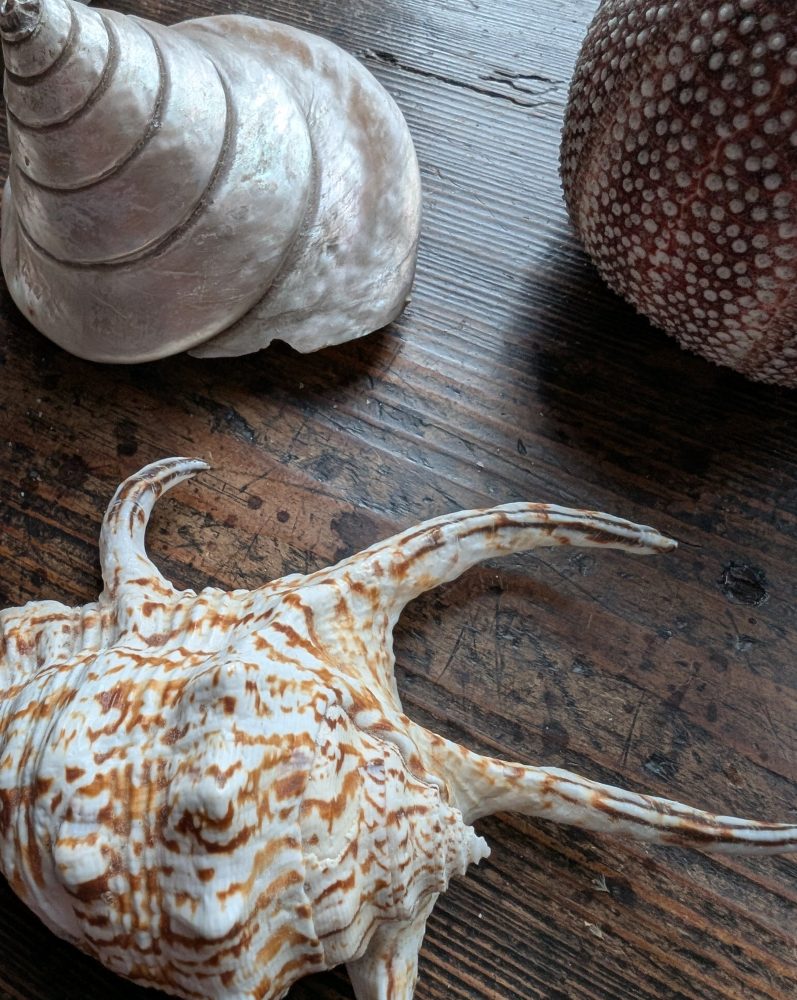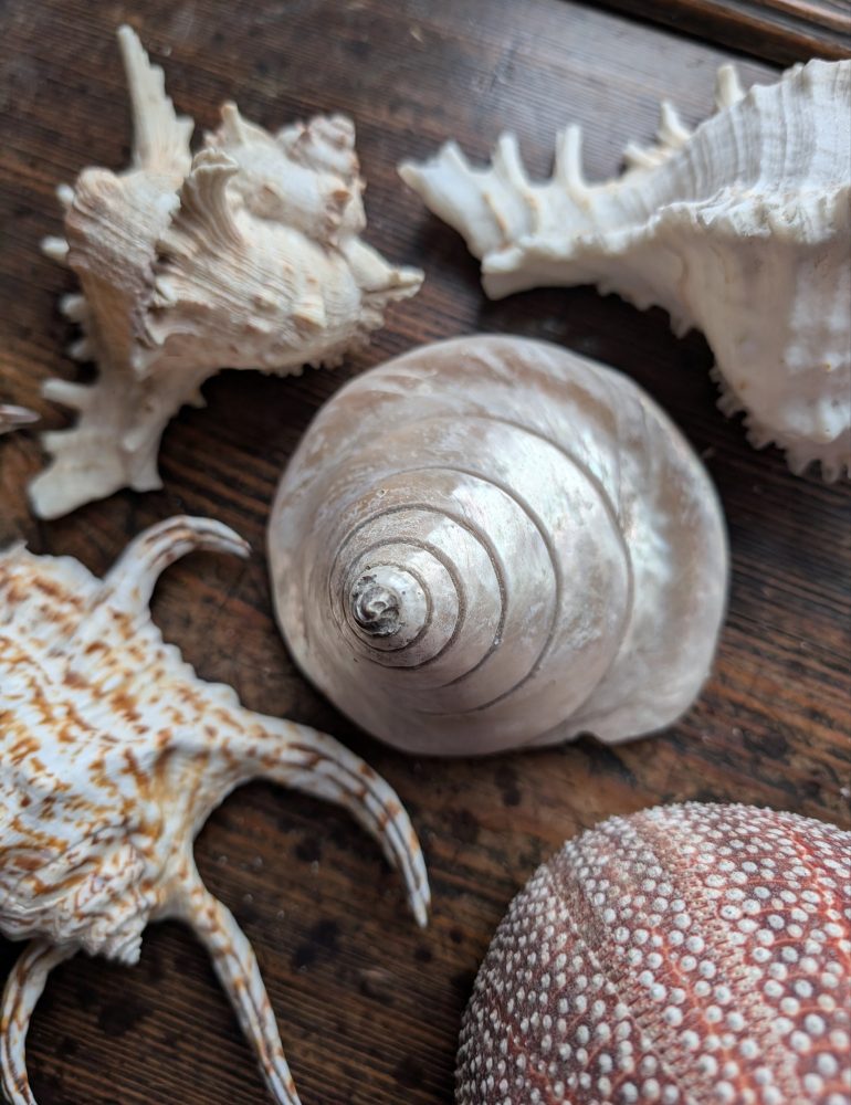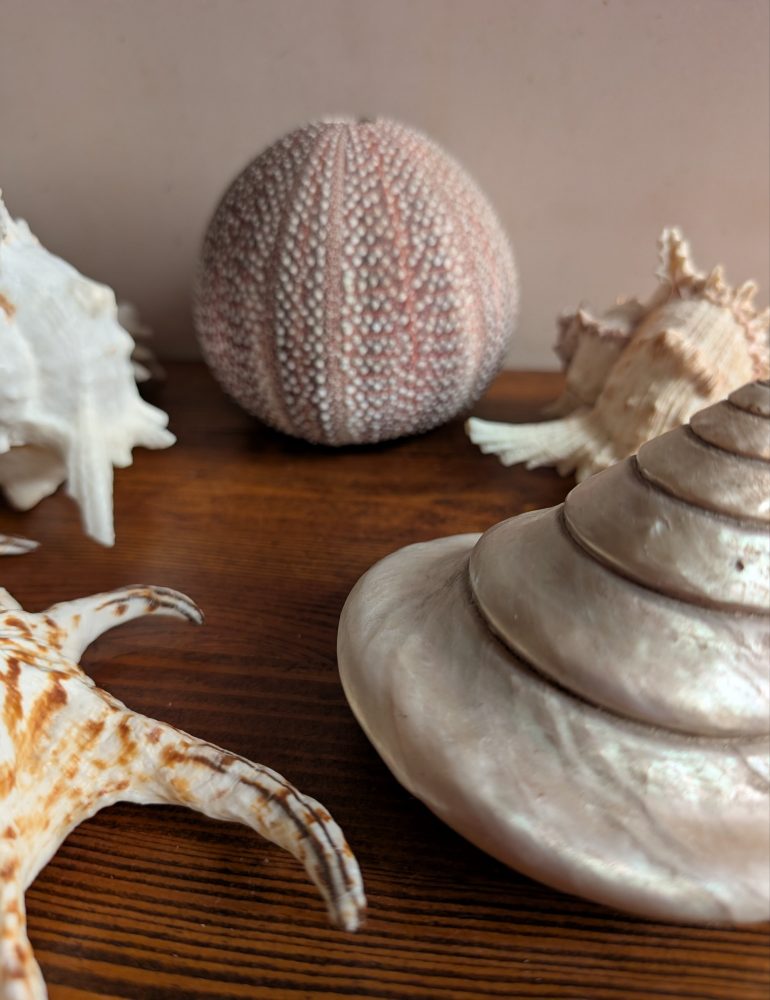 A beautiful vintage collection of murex, spider conch, sea urchin and pearled trochus.