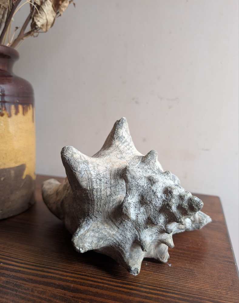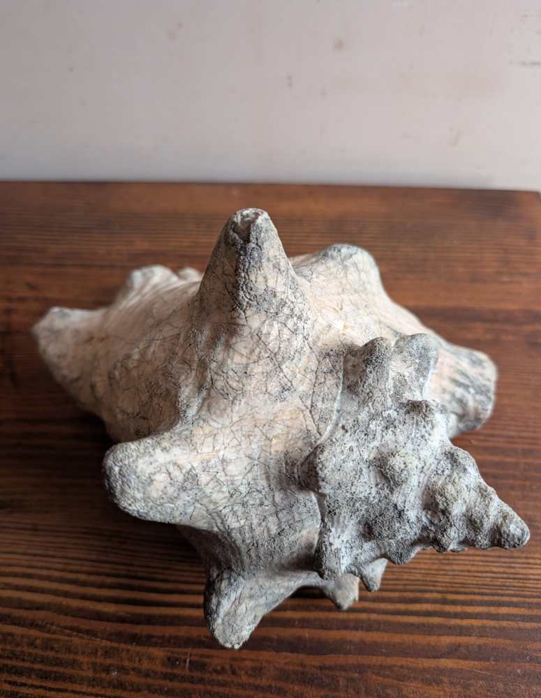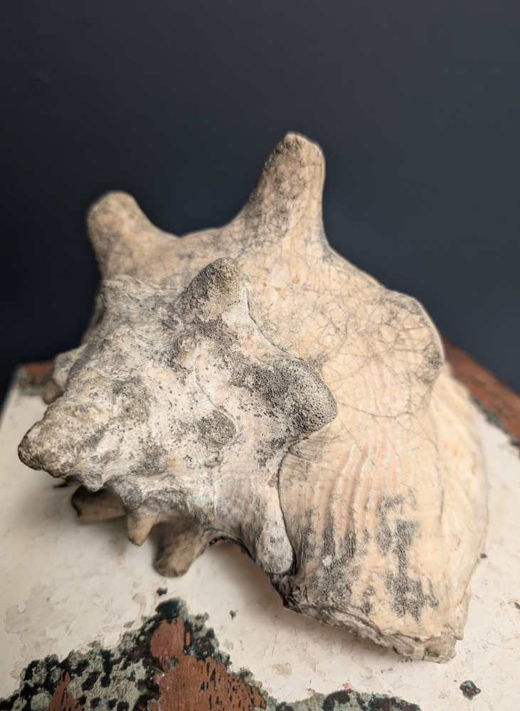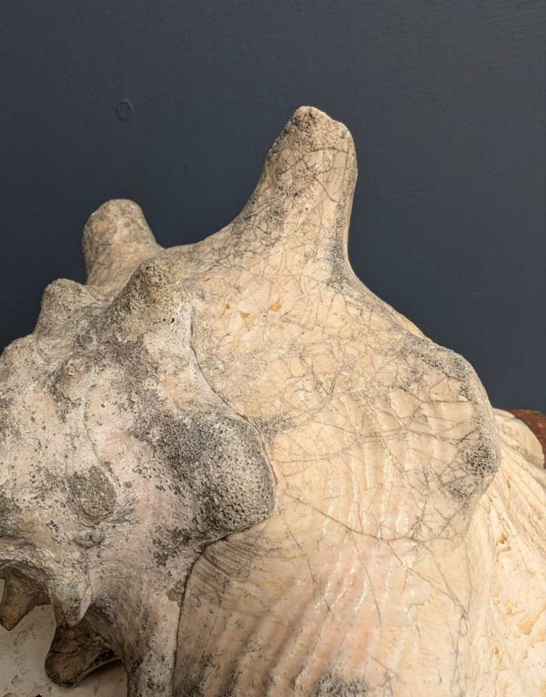 This conch originated in the Carribbean where it was originally sourced, a very long time ago. It was purchased in the last year in France.