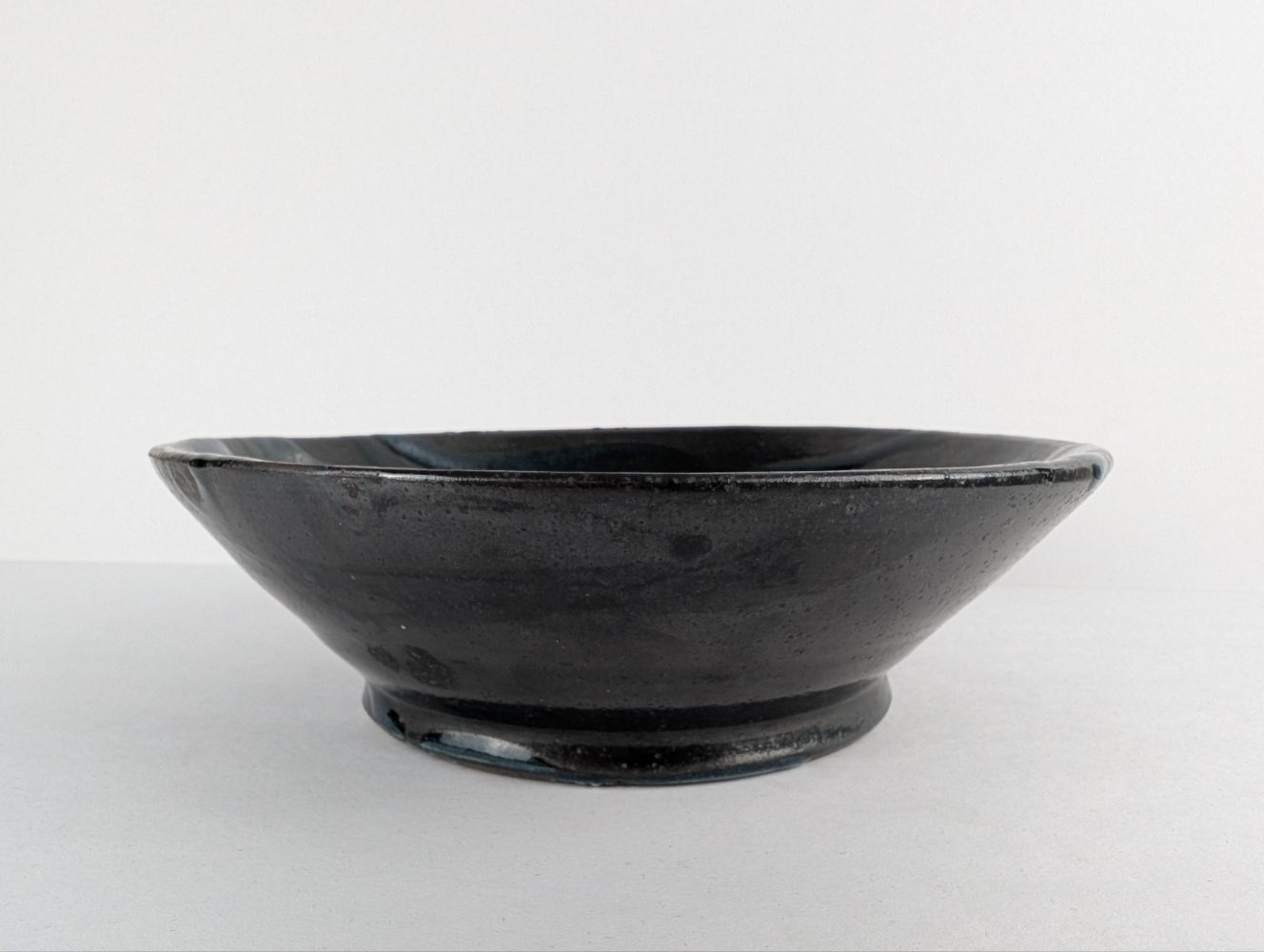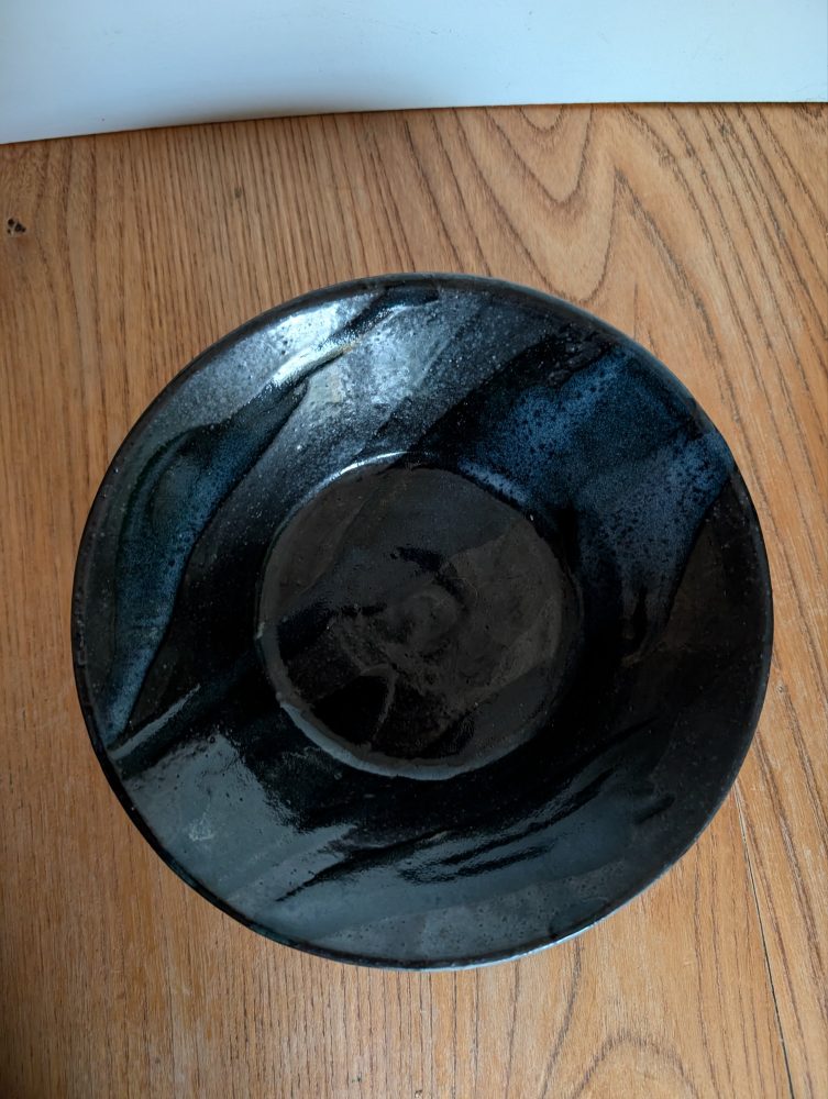 Vintage slipware salt glaze black and blue bowl