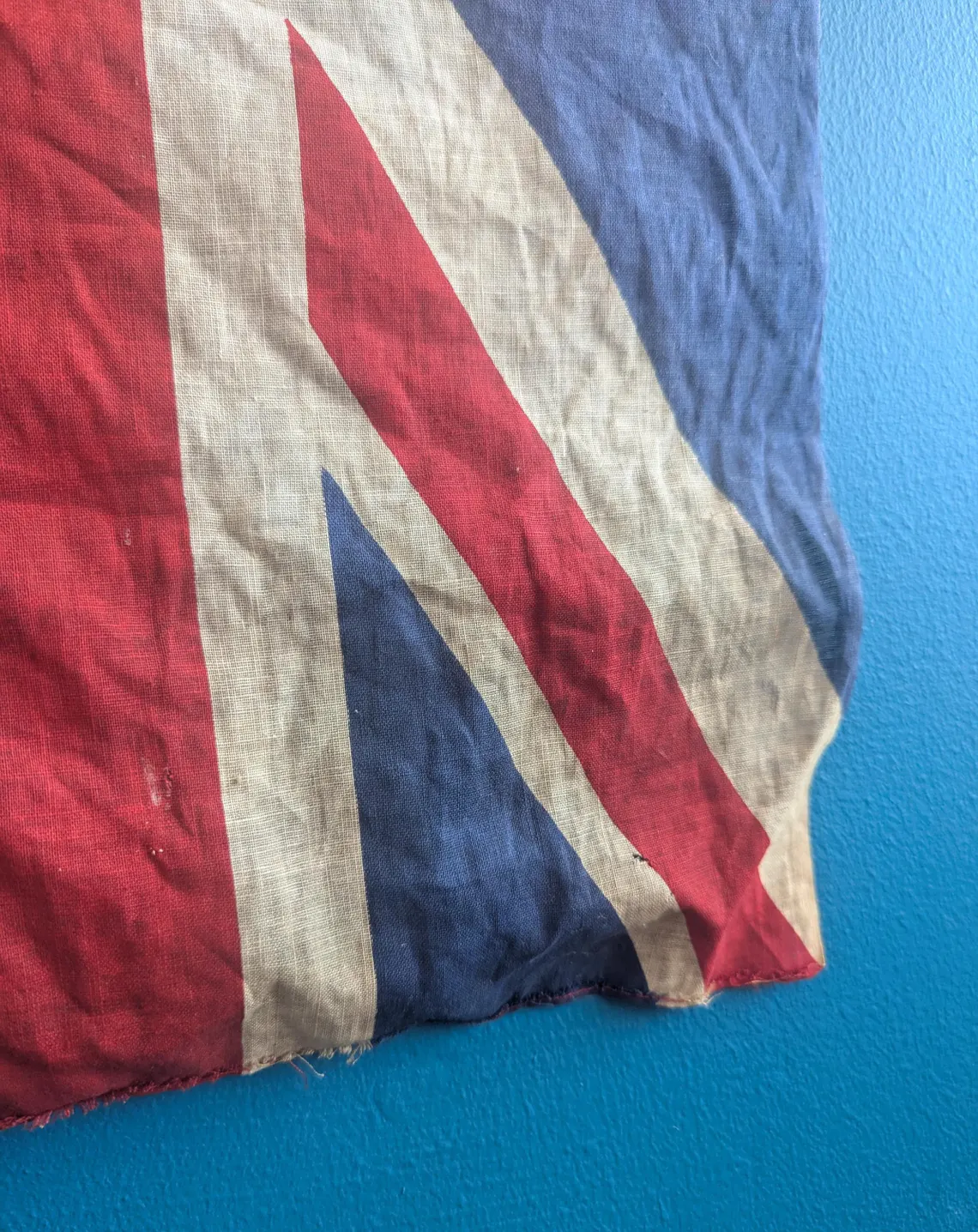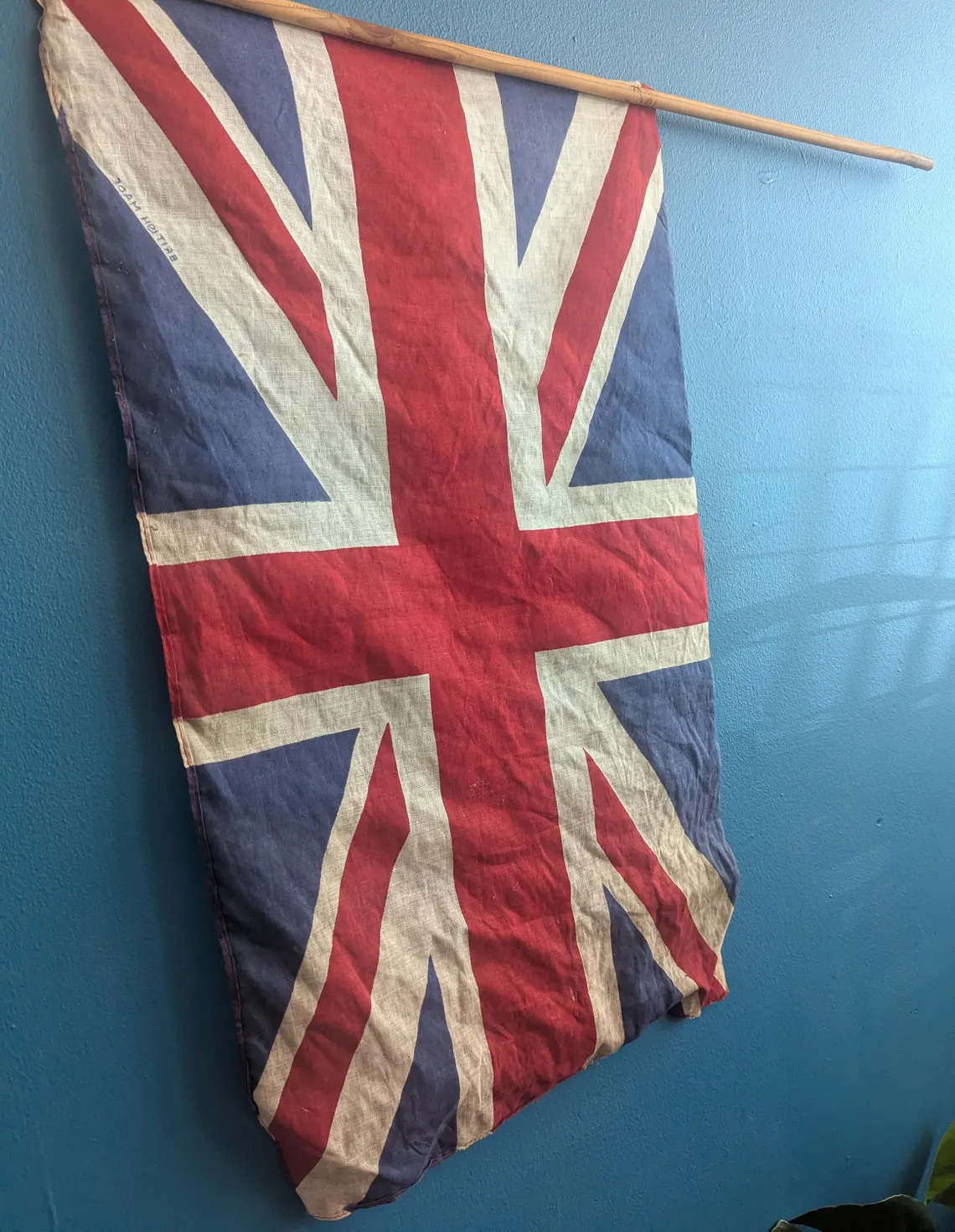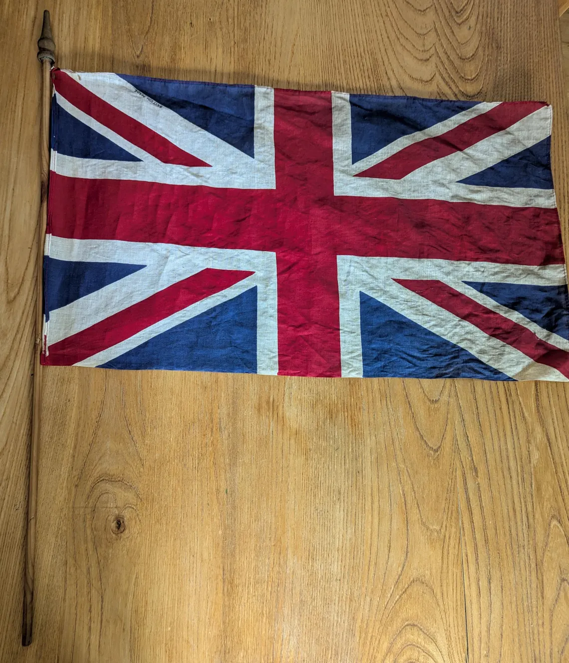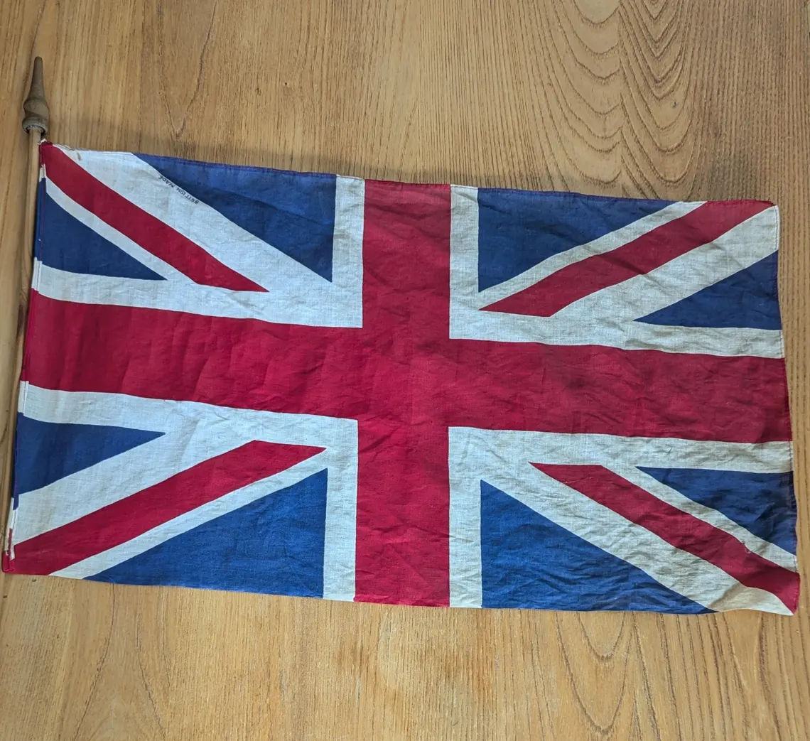 WWII period cotton vintage Union Jack flag on wooden pole